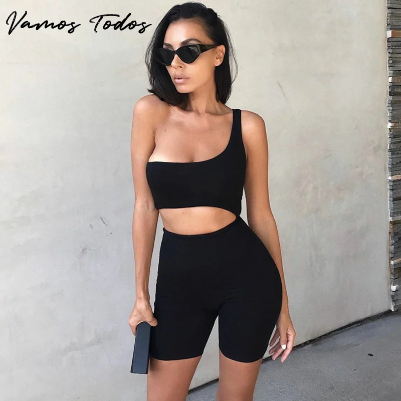 Открытое облегающее платье на одно плечо с легкий костюм с шортами ...