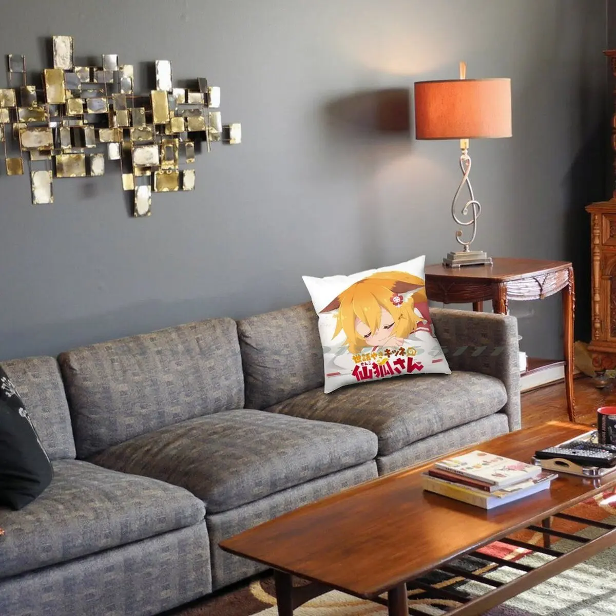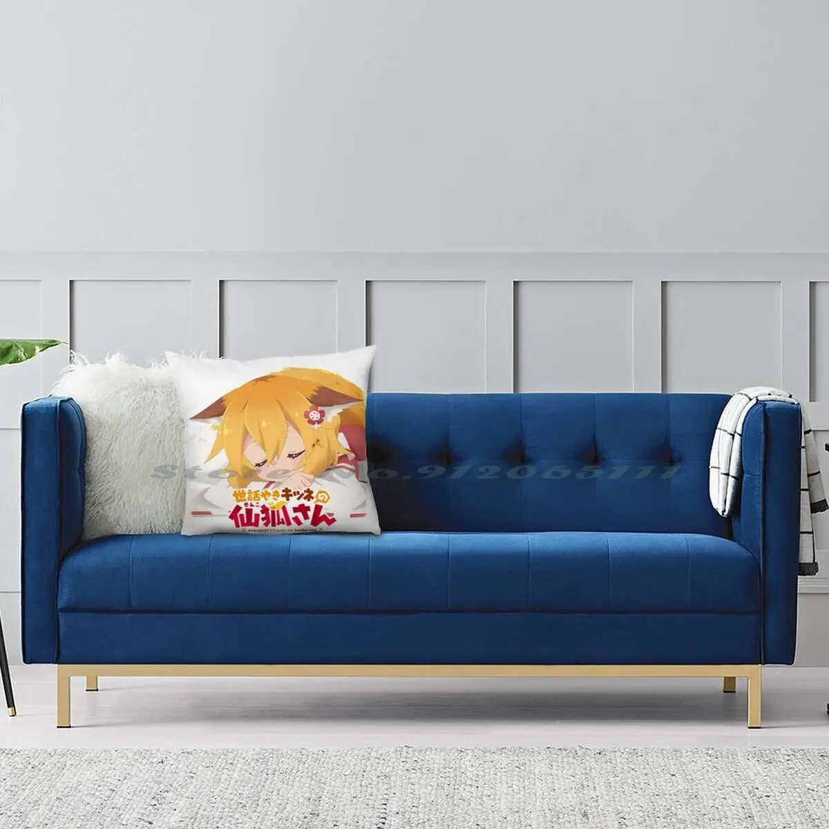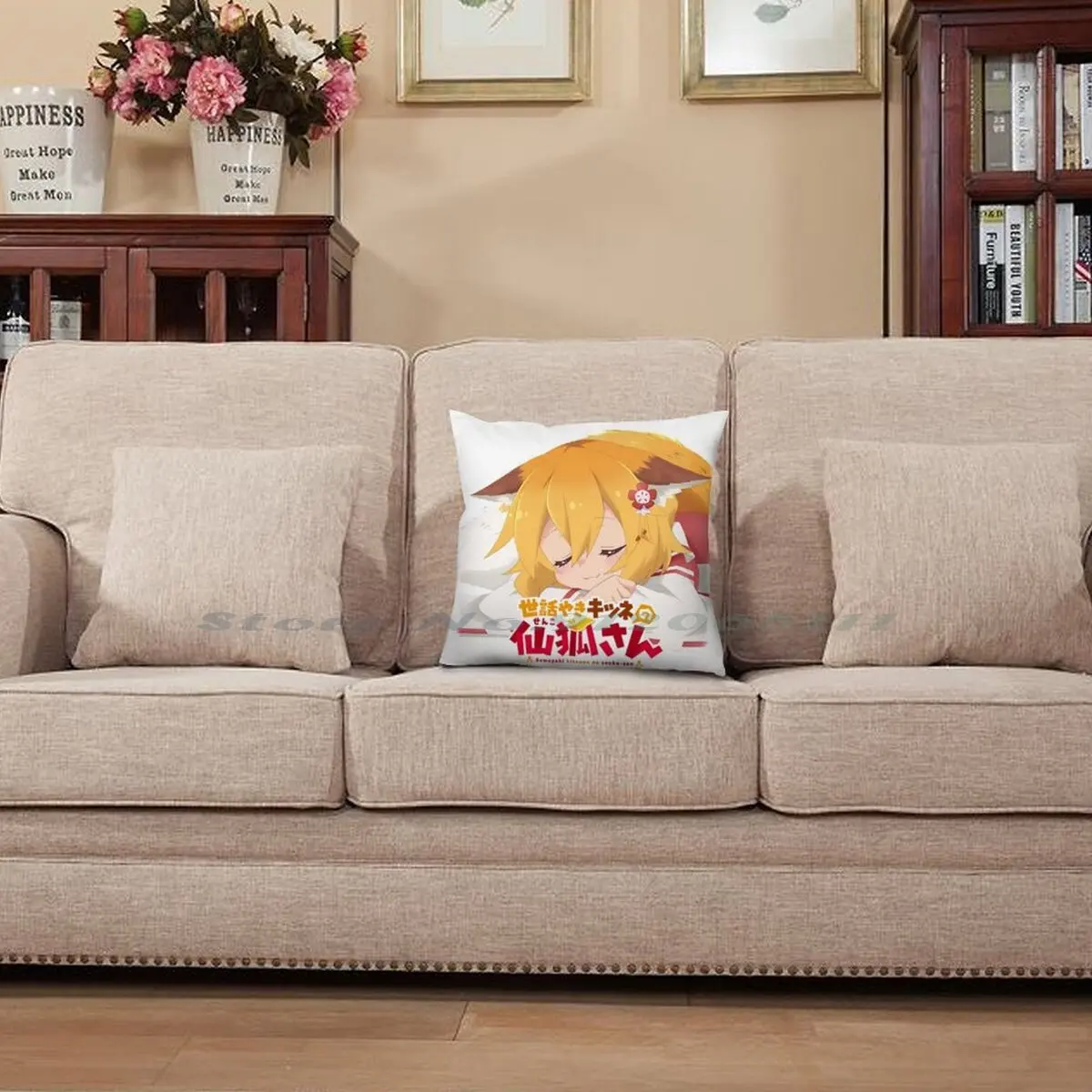 Чехол для подушки из хлопка и льна с изображением лисы Сенко-Сана