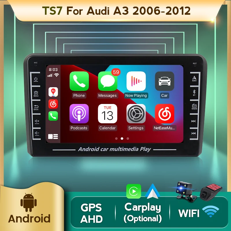 Автомагнитола 2DIN, DVD, 2002x2011, Android, GPS, видео-навигация, стерео, Wi-Fi, CarPlay, автомобильный мультимедийный плеер для Audi A3 S3 8P-