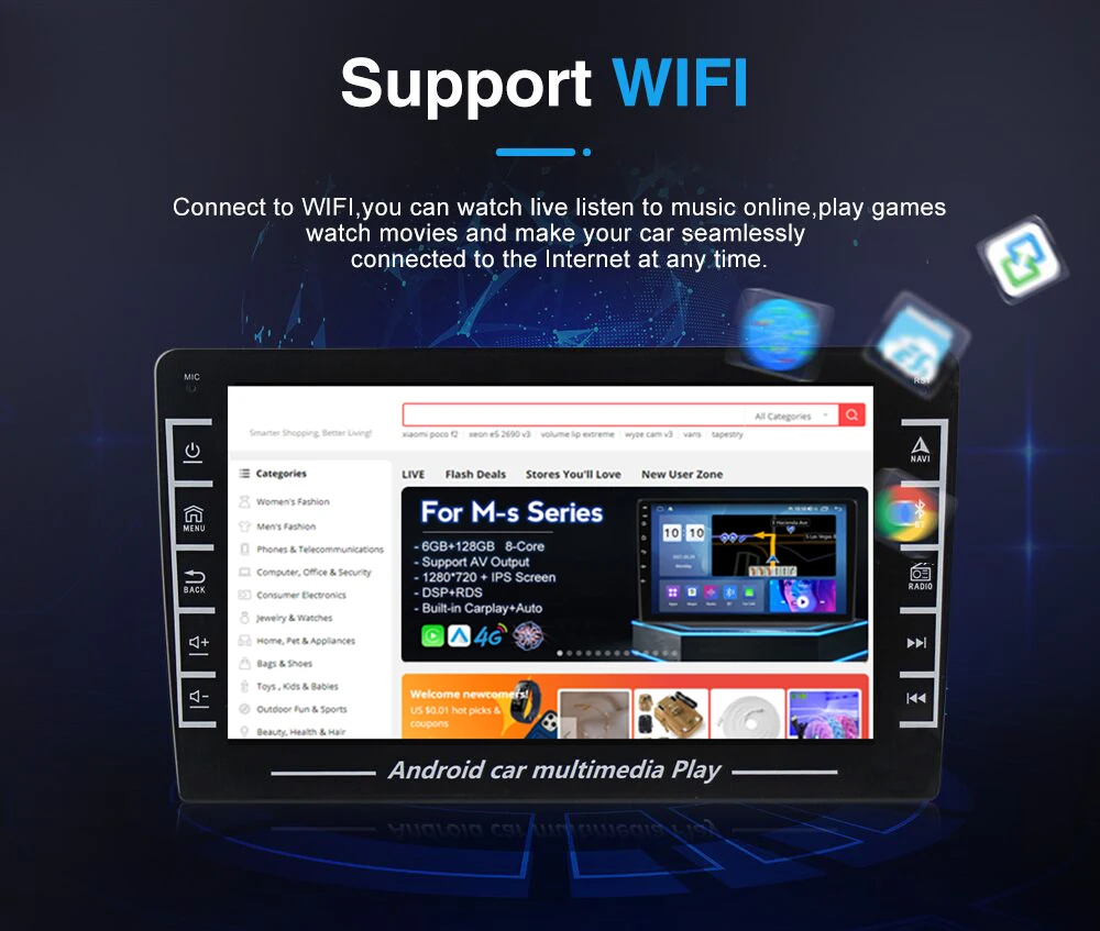 supportWIFI.OBD2 .DVR DAB+ TMPS rear view camera Bluetooth
