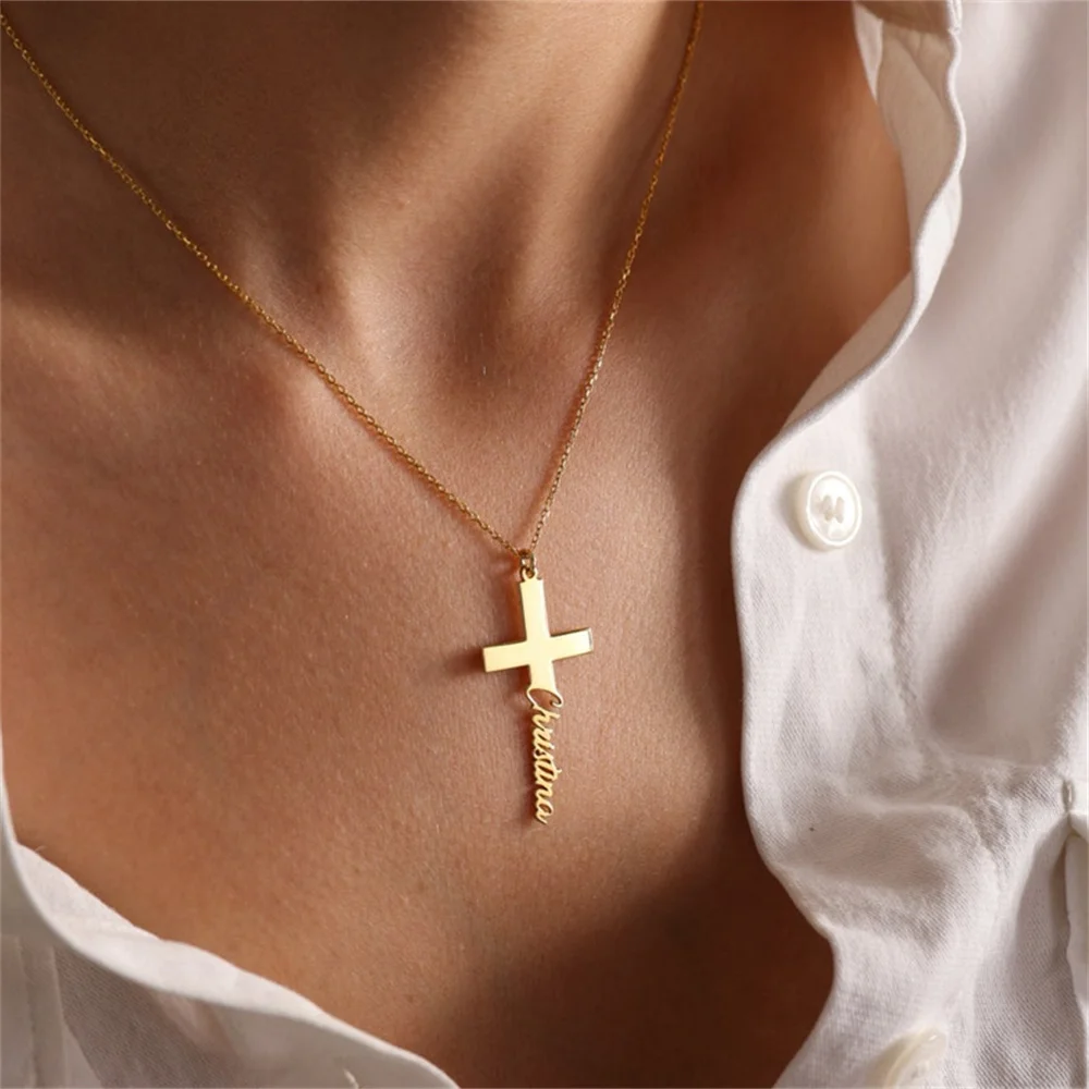Ожерелье Noelia с именем на заказ, ожерелье с кулоном с именем Креста на заказ, ожерелье из нержавеющей стали на заказ, Исламский подарок