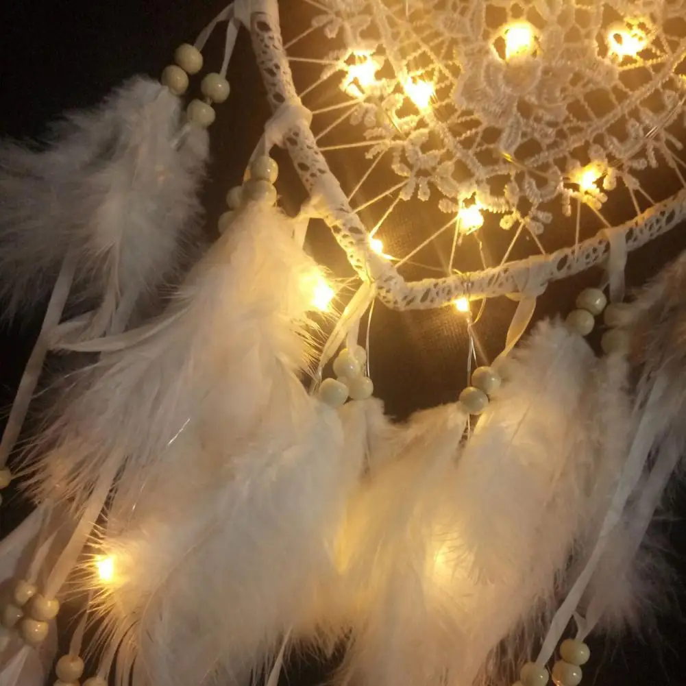 Светодиодный светильник Ловец снов с перьями, декор Ловец снов в форме сердца, светильник, настенные подвесные украшения, домашний декор для спальни 2021