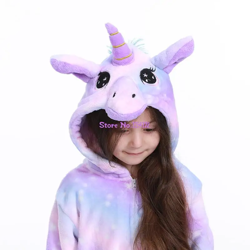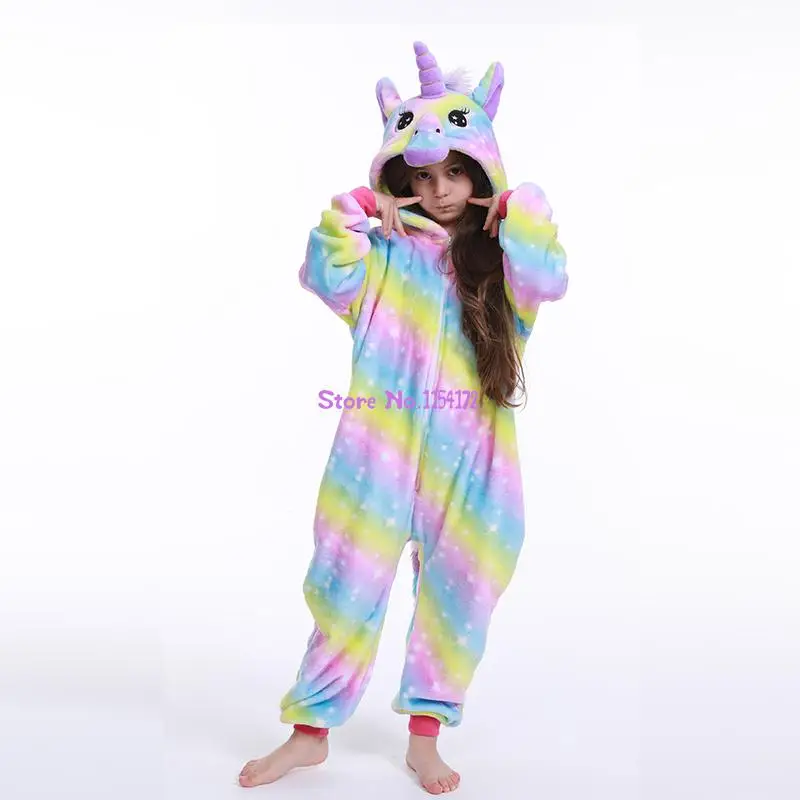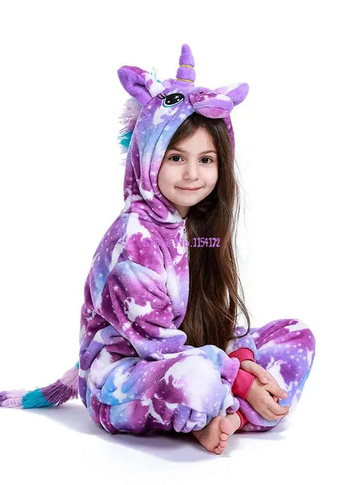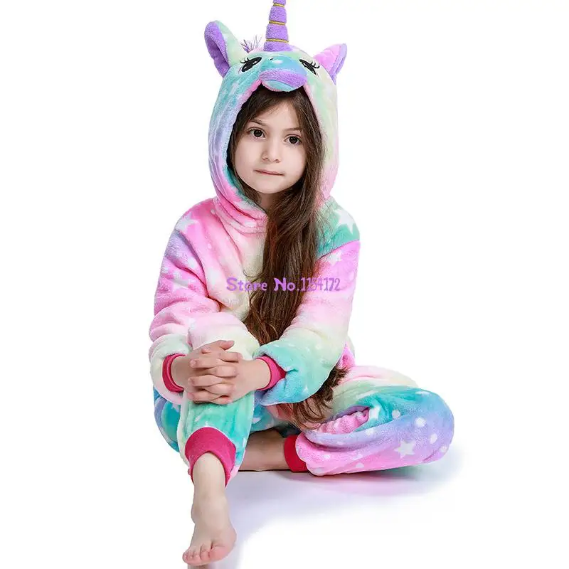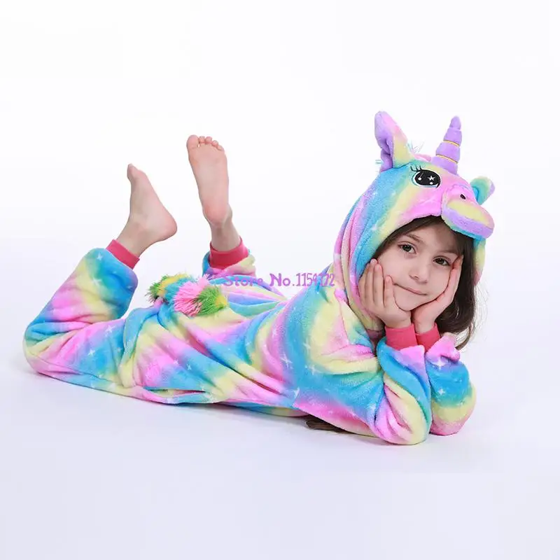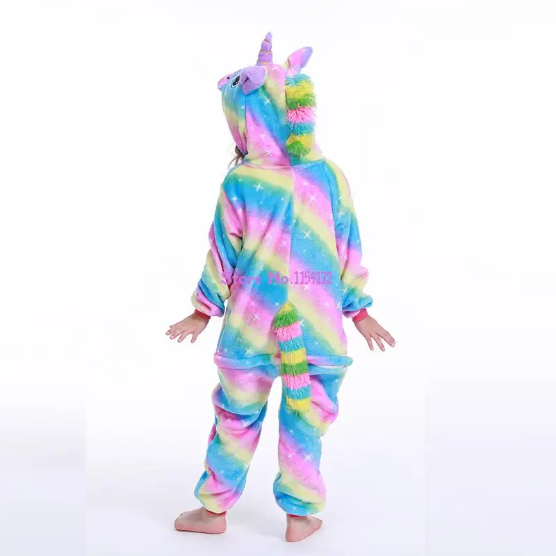 Детские пижамы-кигуруми в виде единорога, Детская Пижама с мультяшными животными, зимняя одежда для сна, комбинезоны для мальчиков и девочек, комплект одежды с единорогом