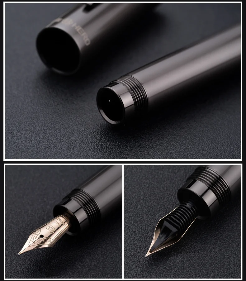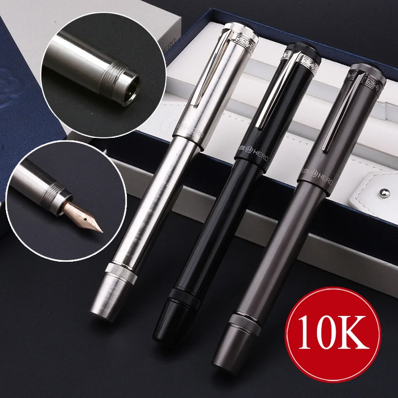 Перьевая ручка HERO H718, с золотым пером 10 к, для письма, со скрытым поворотным пером, для бизнеса и офиса, канцелярский подарок; Ручка