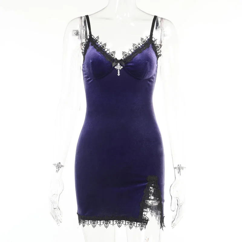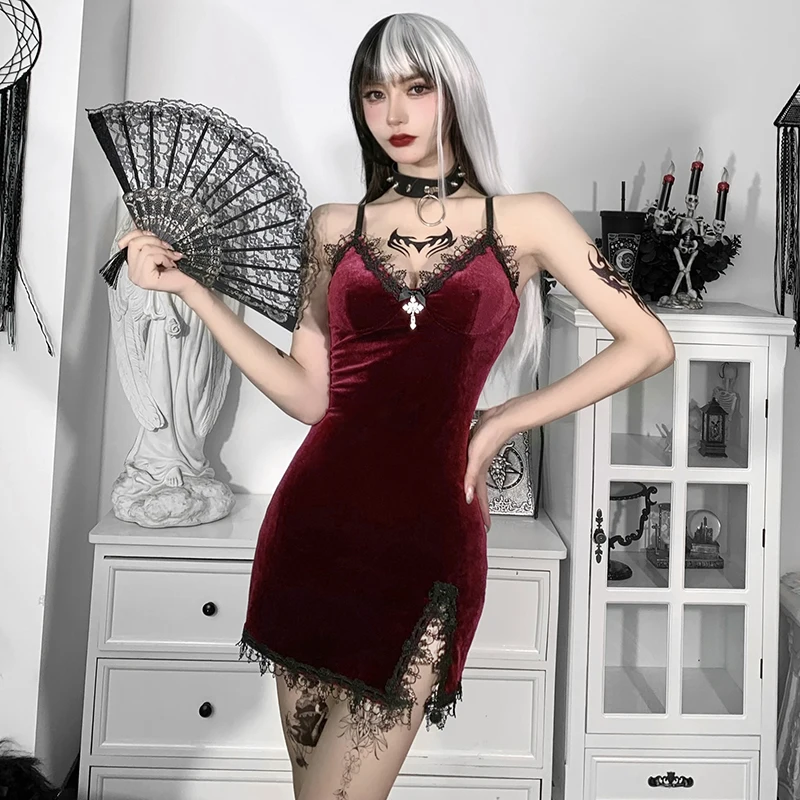 Женское мини-платье InsGoth, винтажное сексуальное красное платье на тонких бретелях, с высокой талией, с разрезом