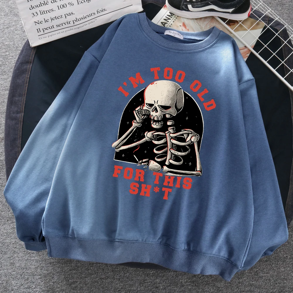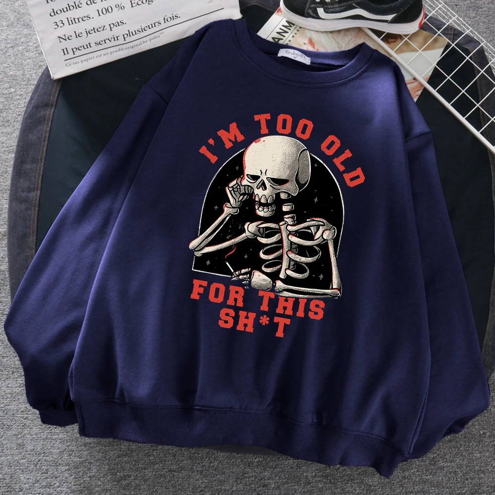 Толстовка мужская с забавным черепом Я слишком старый, Модный свитшот в стиле хип-хоп, теплый спортивный костюм для мужчин, осенние свободные спортивные костюмы