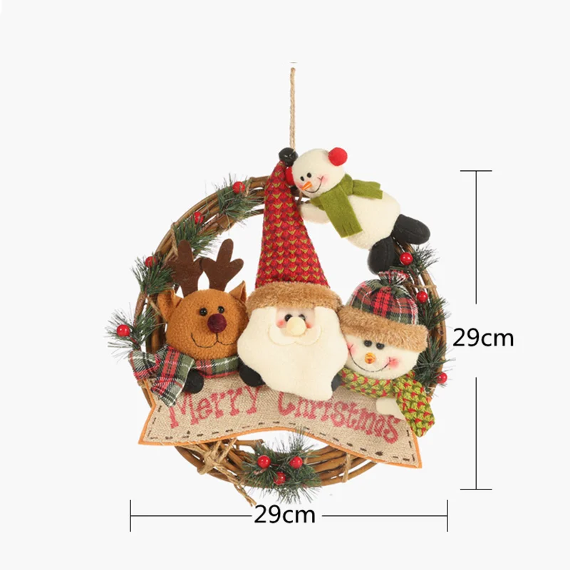 Рождественское украшение для дома, Рождественская уличная гирлянда из ротанга, украшение в виде Санты, снеговика, лозы, кольца, подвеска для окон, дверей, новый год