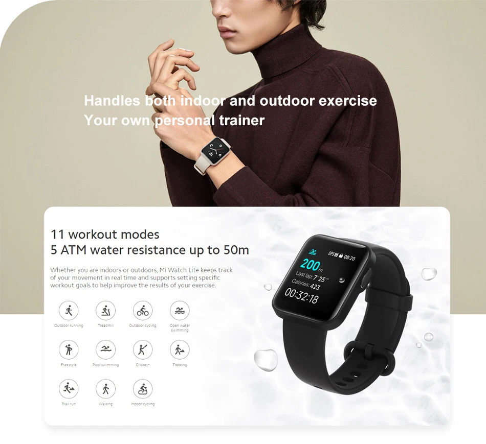 Смарт-часы Xiaomi Mi Watch Lite GPS 5ATM, дисплей 1,4 дюйма, Bluetooth, водонепроницаемые Смарт-часы, фитнес-трекер с пульсометром