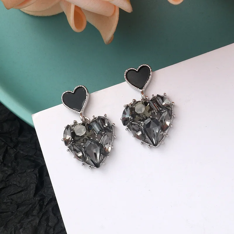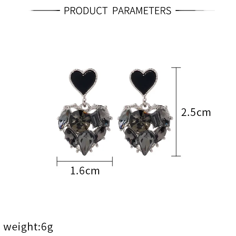 Серьги-капли, черные, в форме сердца, серьга из сплава и кристаллов