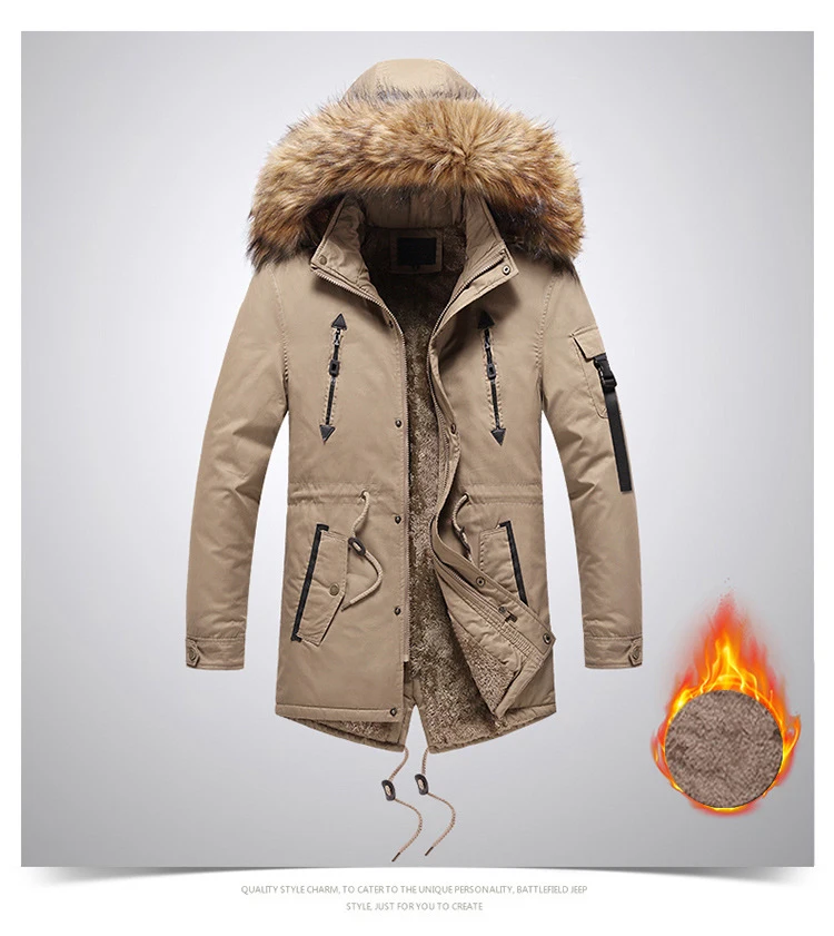 Парка мужская зимняя Длинная с меховым воротником и капюшоном, на хлопковой подкладке