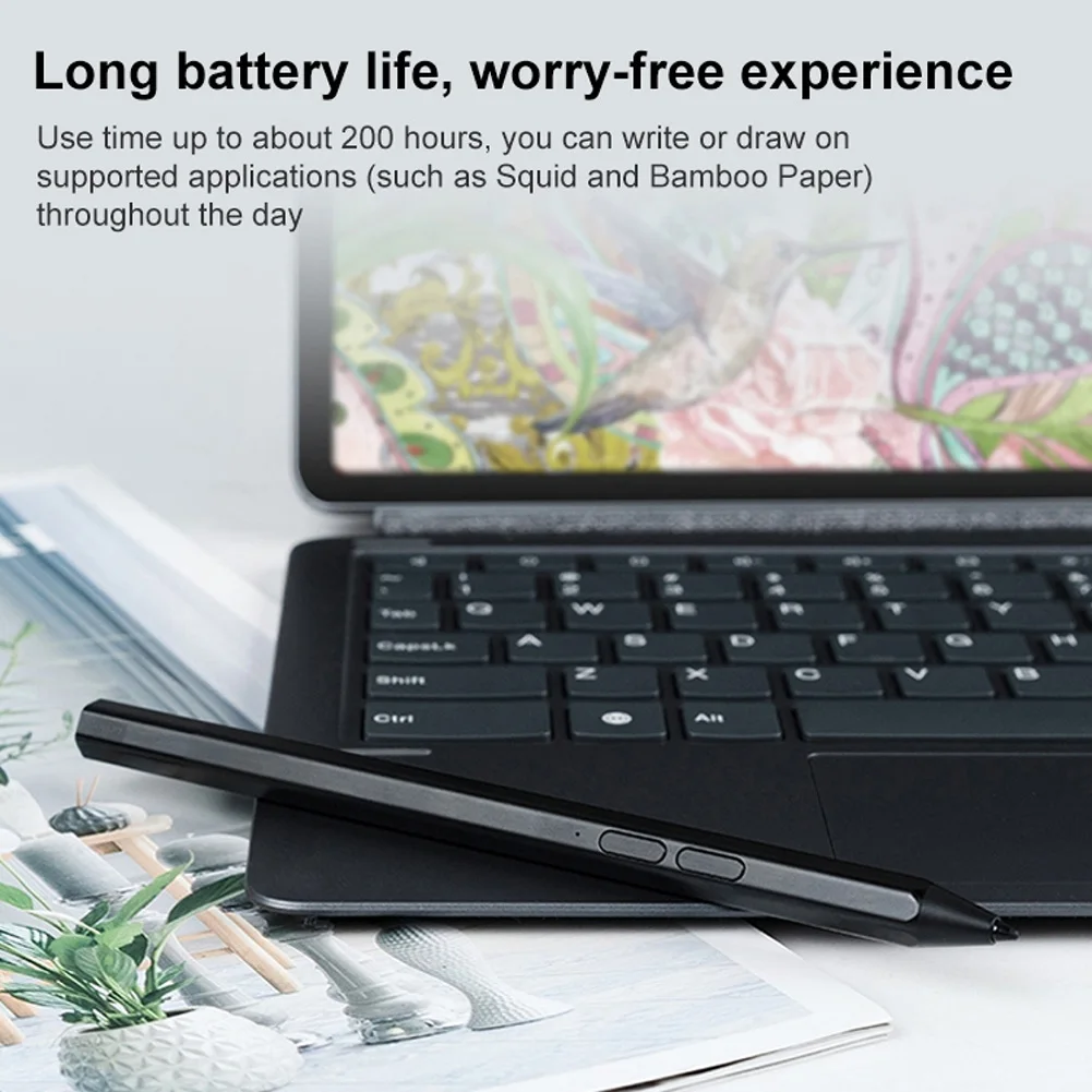 Беззаботный опыт работы с длительным сроком службы батареи. Используйте время до 200 часов, чтобы писать или рисовать на поддерживаемых приложениях (таких как кальмар и бамбуковая бумага) в течение всего дня