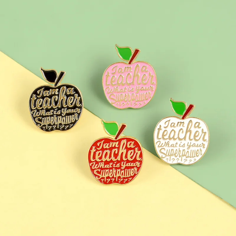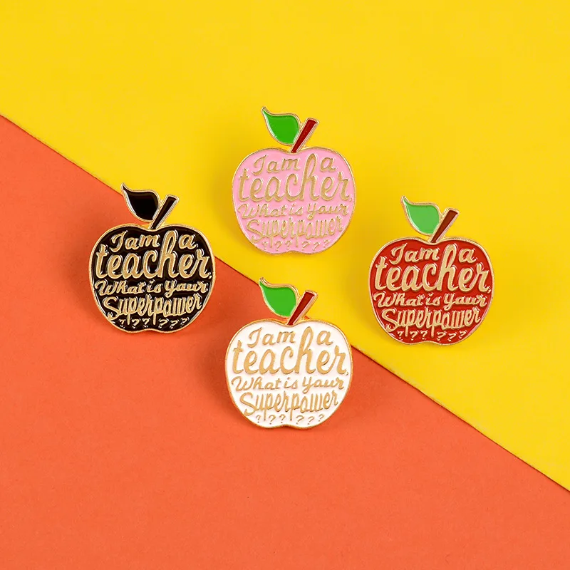 Эмалированные булавки с фруктами, 4 цвета, брошь Я учитель, индивидуальный значок на лацкан, ювелирные изделия для друзей, подарок, унисекс