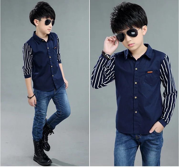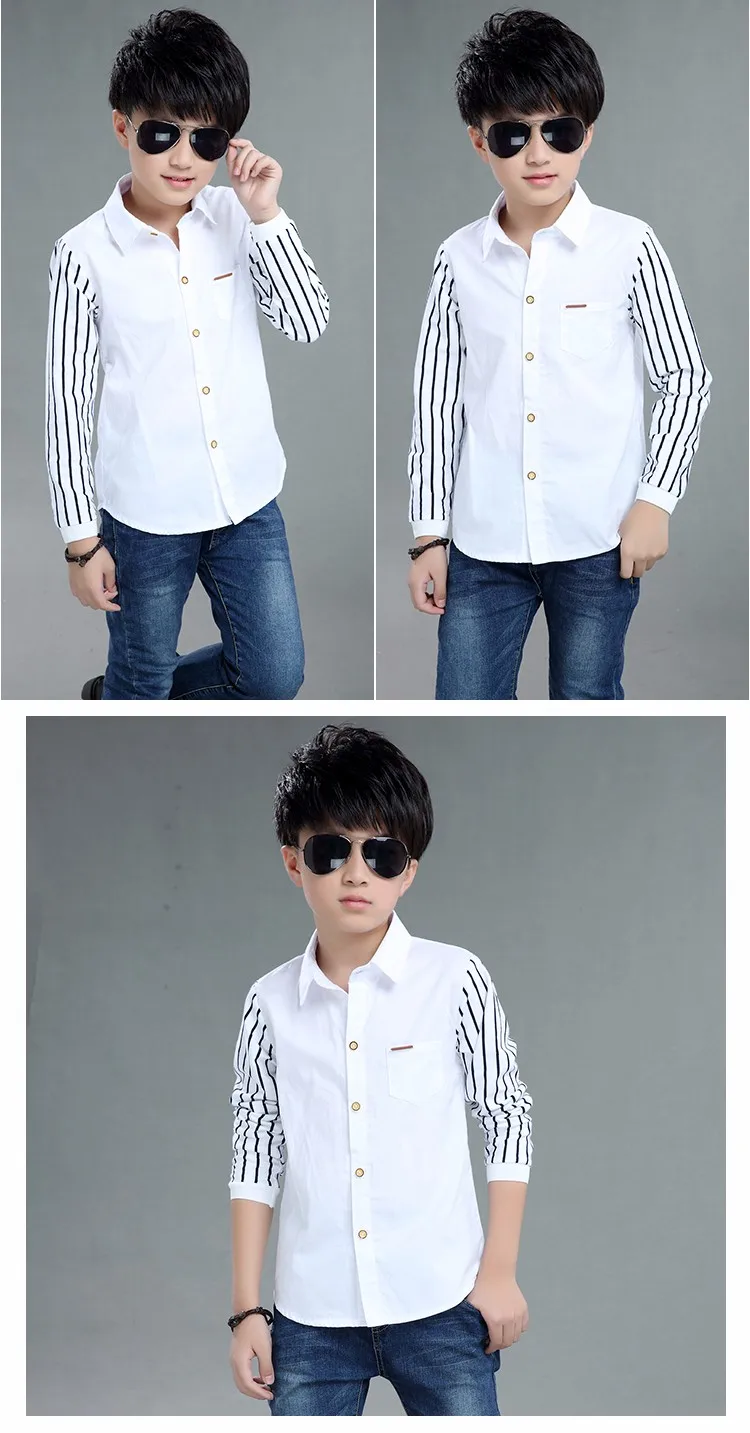 Осень 2022, детская одежда, рубашки для мальчиков, рубашки в полоску с длинным рукавом и отложным воротником для мальчиков, рубашки для больших мальчиков, Повседневные Рубашки, Топы