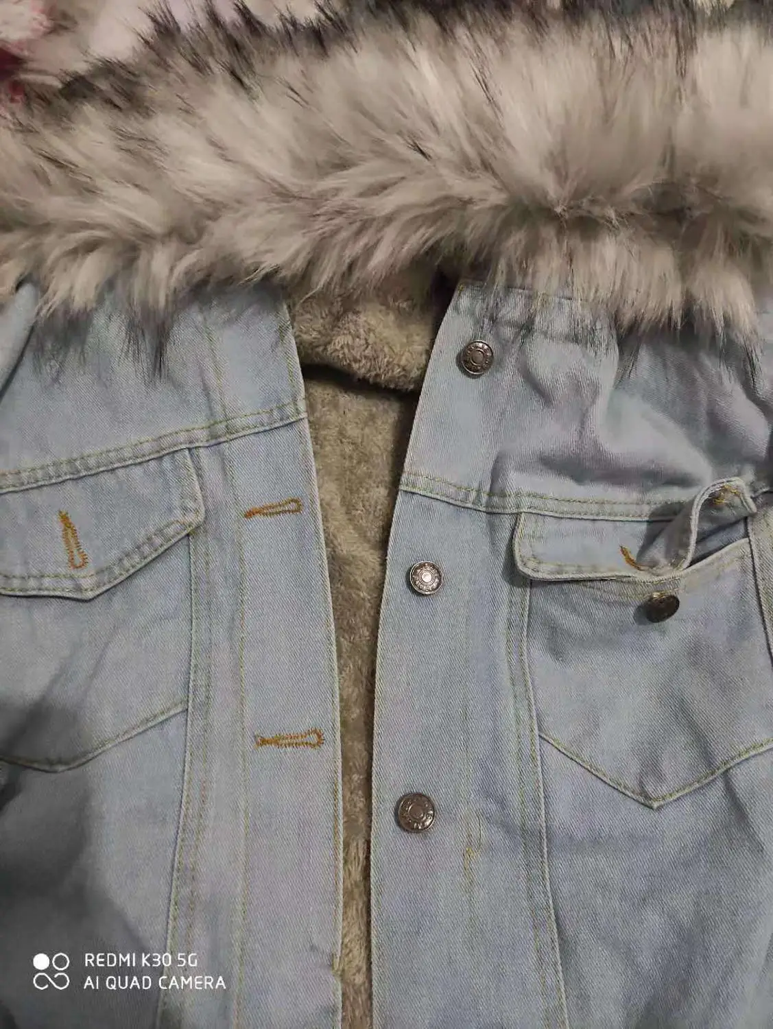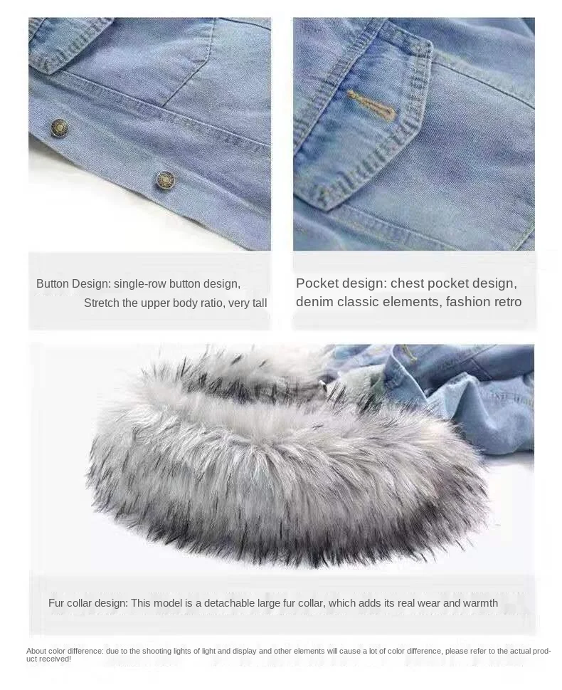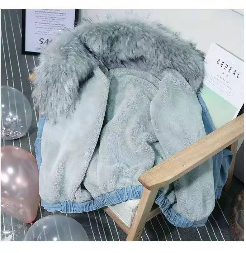 Куртка женская джинсовая, осенне-зимняя, теплая, пушистая, с меховы...