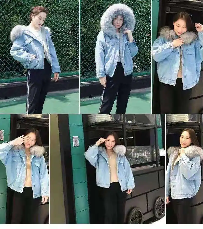 Женская джинсовая куртка, свободная утепленная куртка с большим мех...