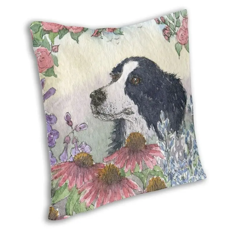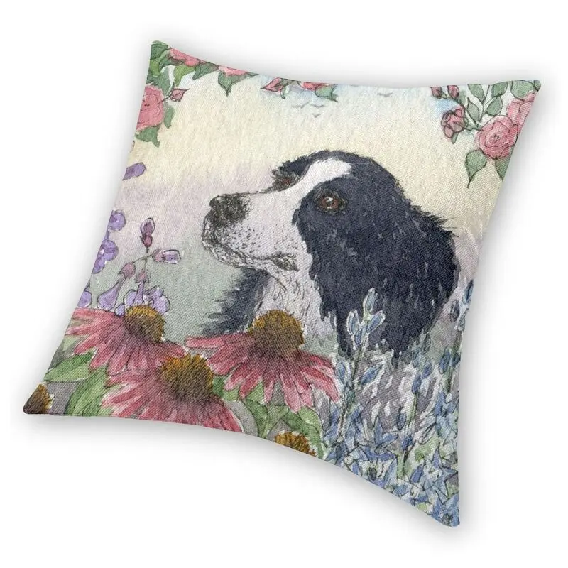 Чехол на подушку с изображением милой границы, собаки колли, цветов, квадратной формы, домашняя декоративная наволочка с 3D рисунком животных, домашних животных, наволочка для гостиной