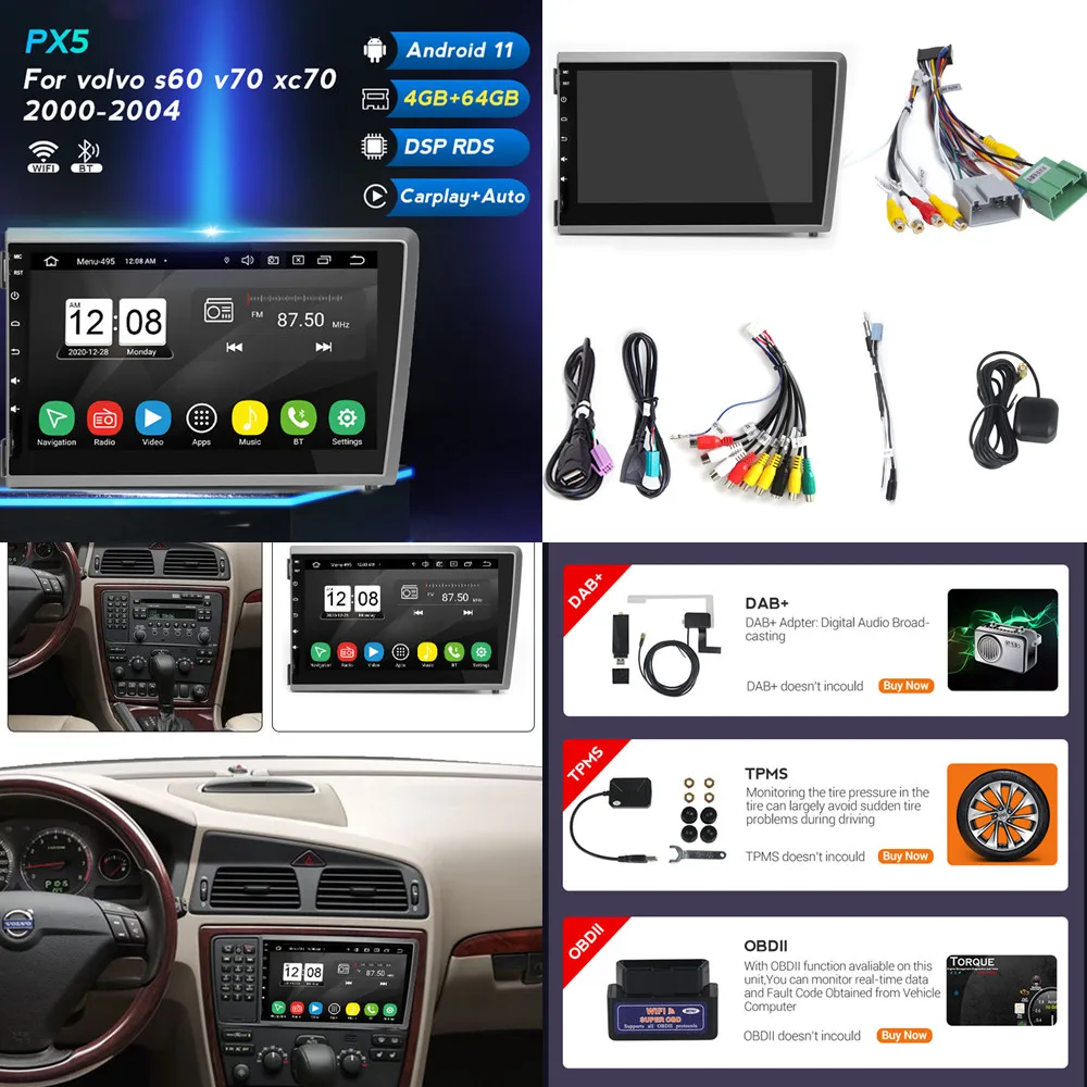 4 Гб + 64 Гб DSP автомобильный DVD-плеер для VOLVO S60 VOLVO V50 V70 XC70 2000 2001 2002 2003 2004 автомобильный радиоприемник с поддержкой GPS-навигации DSP русский