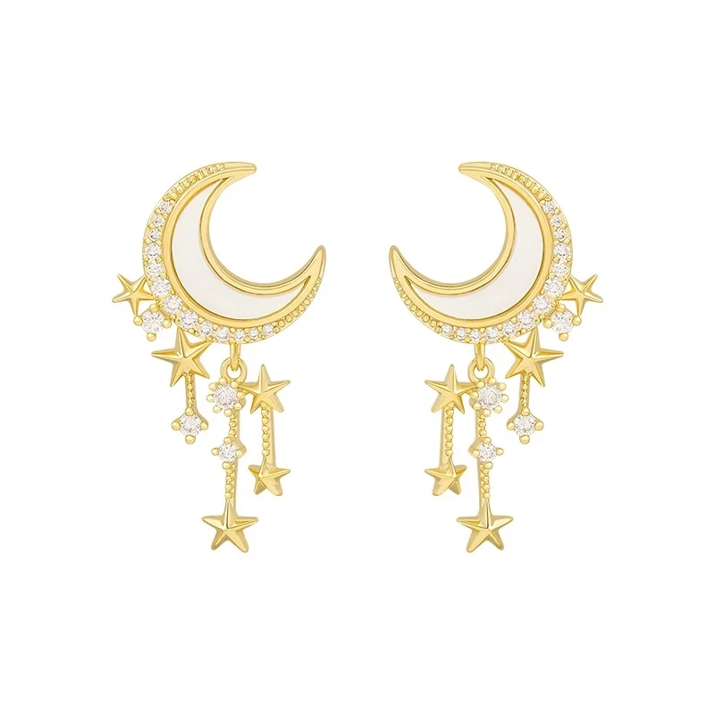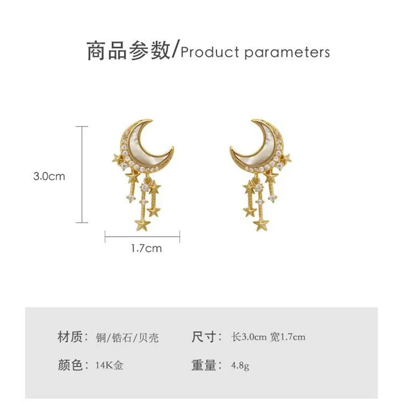 Женские серьги с Луной и звездой, элегантные и изысканные серьги, с...