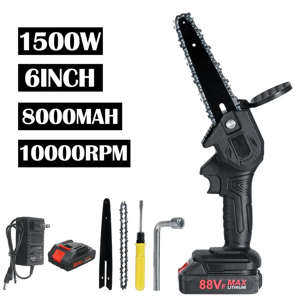 Электрическая цепная пила, 6 дюймов, 88 в, 1500 Вт