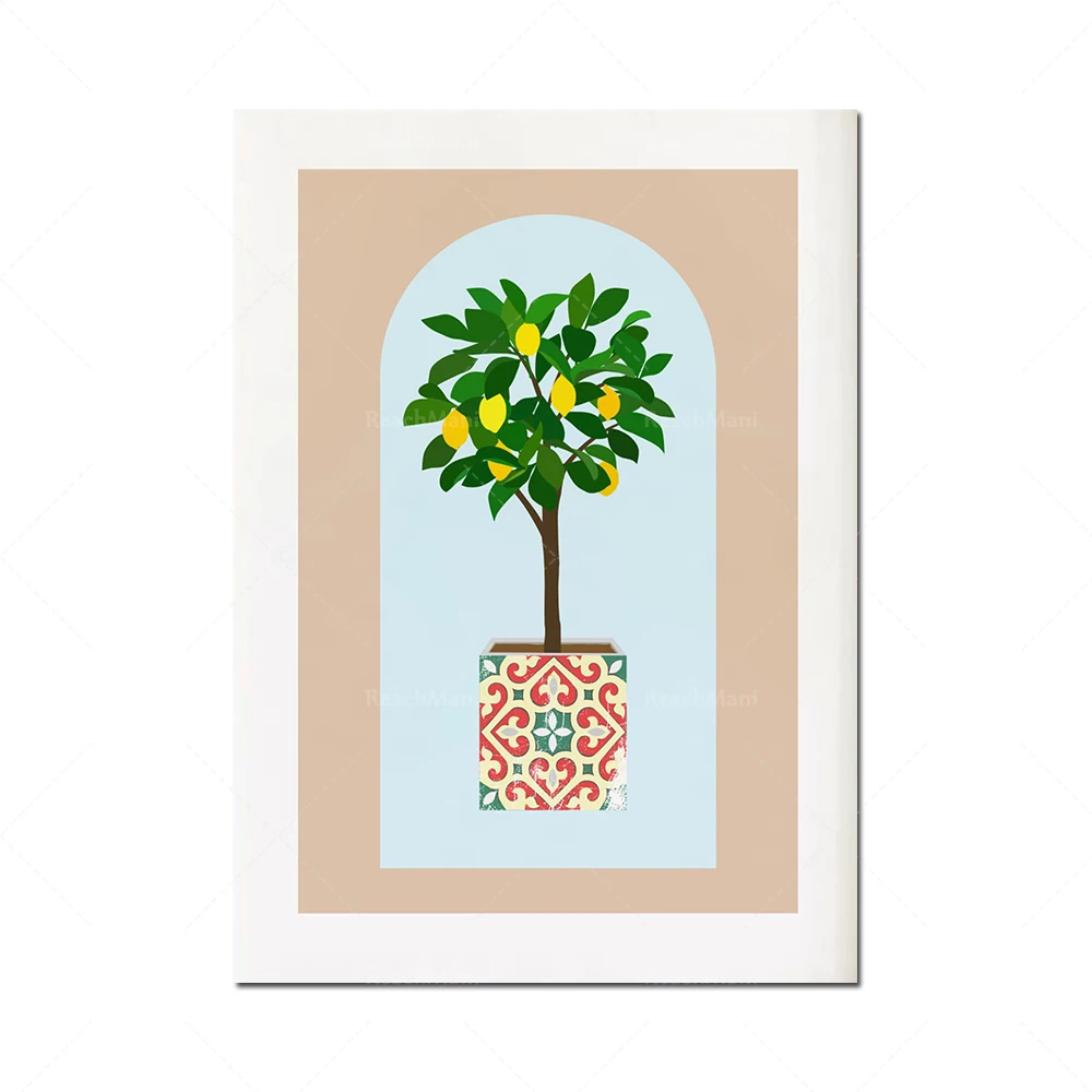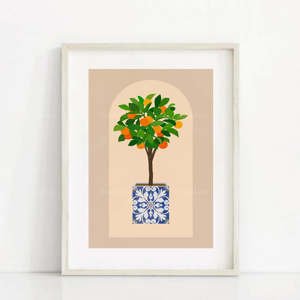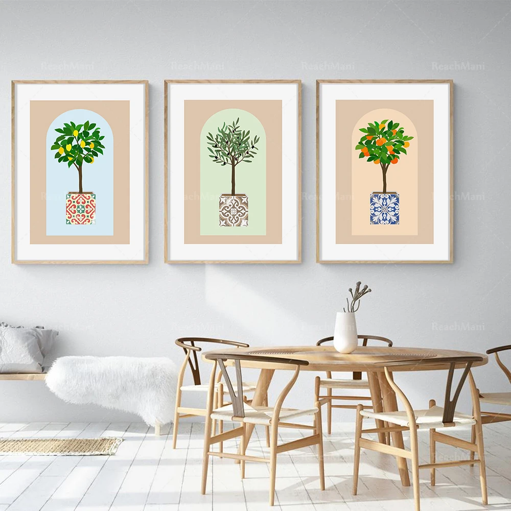 Настенное искусство с цитрусовым деревом, набор из 3 предметов, принт с оливковым лимоном и оранжевым деревом, абстрактный набор с растительным принтом, декоративный плакат