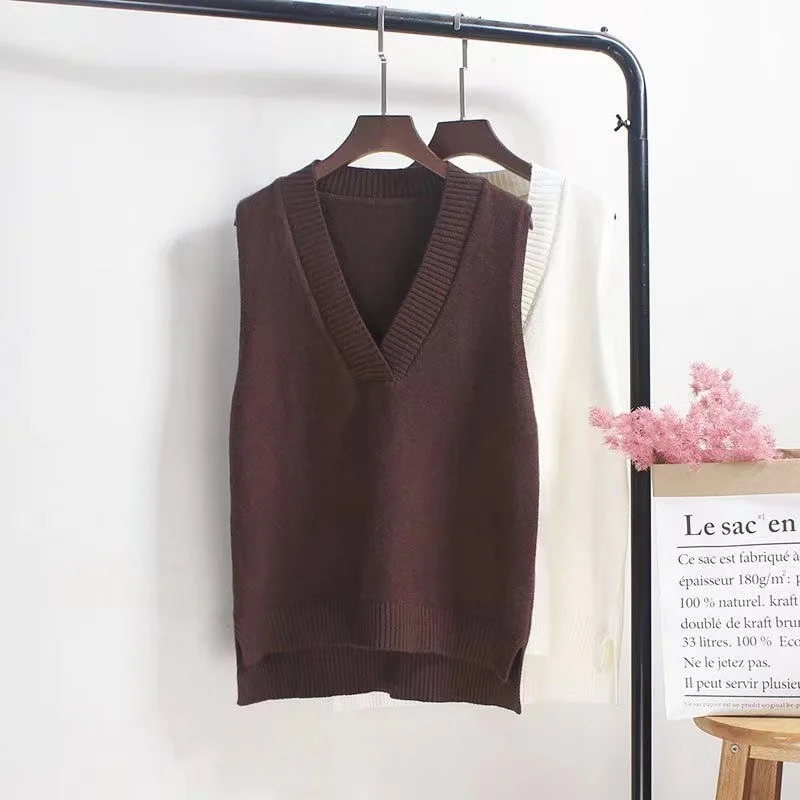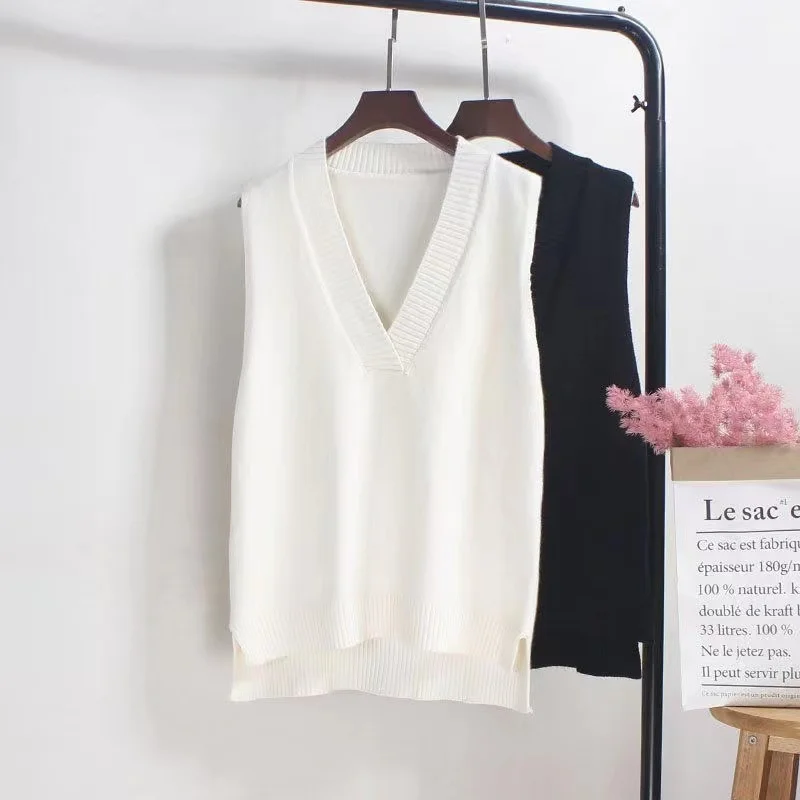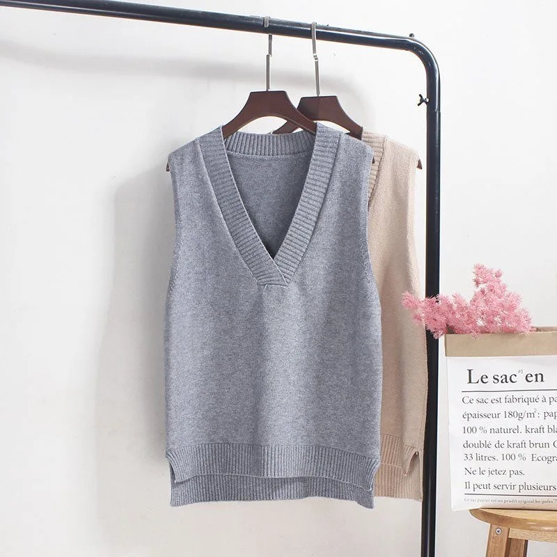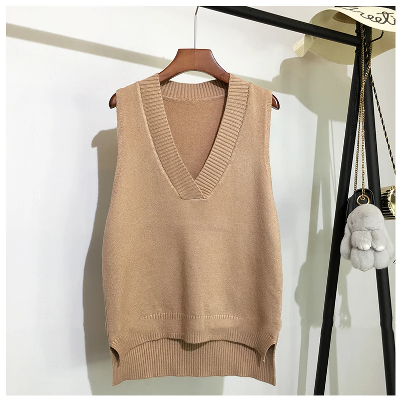 Женский вязаный свитер без рукавов с V-образным вырезом, однотонный Свободный Повседневный розовый джемпер в Корейском стиле на осень и зиму