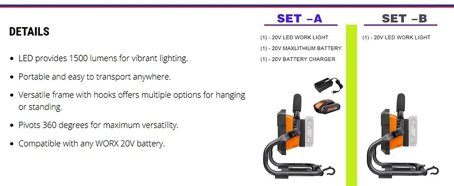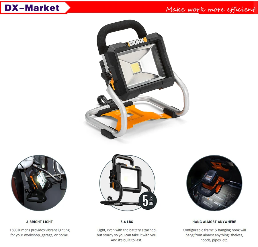 Телескопический светодиодный фонарик 20 в, Многофункциональный беспроводной портативный прожектор WORX WX026