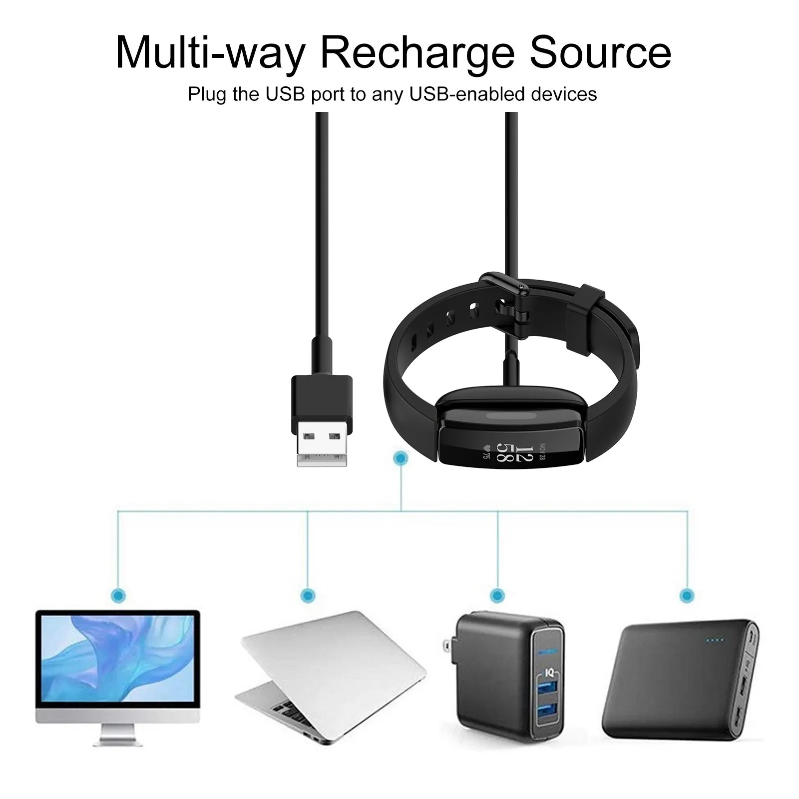 Для Fitbit Luxe- Smart Браслет зарядный кабель зарядный зажим USB зарядное устройство адаптер 1 м