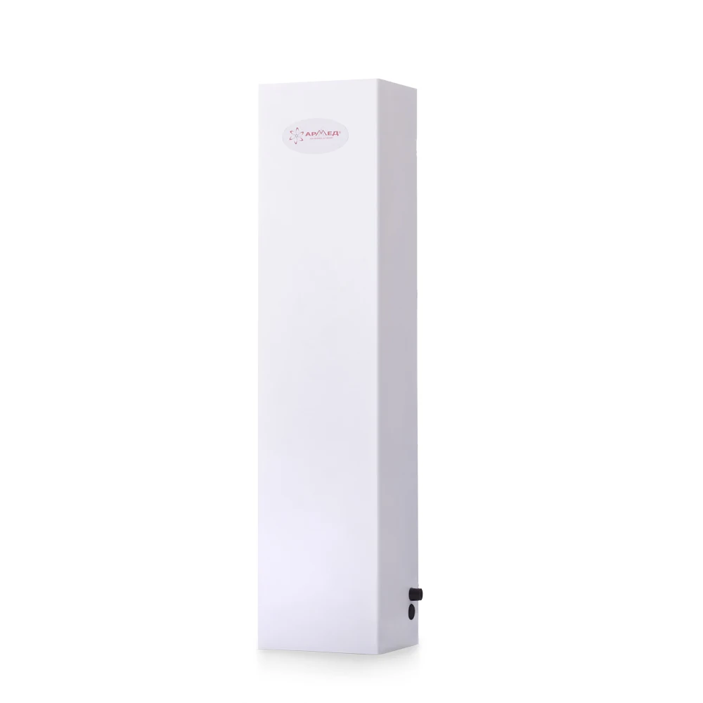 Прочный металлический корпус рециркулятора устойчив к ударам и воздействию внешних факторов. Конструкция закрытого типа надежно защищает УФ-лампу. Защитный корпус не пропускает ультрафиолет, поэтому смело можно находиться в обрабатываемом помещении без малейшего риска для здоровья.