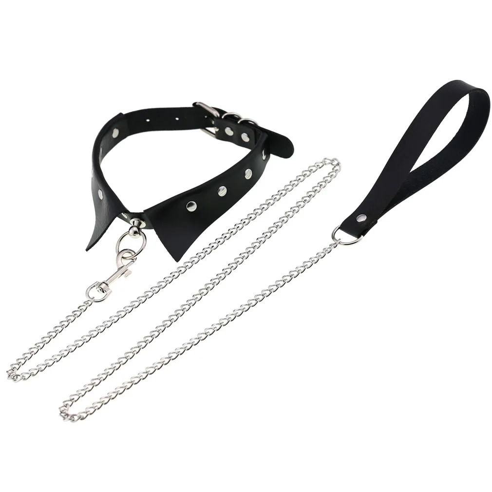 Харадзюку женский мужской сексуальный заклёпка альтернативный металлический раб PU кожаный ошейник тяговое ожерелье-бондаж шейный платок сексуальные игрушки для пары