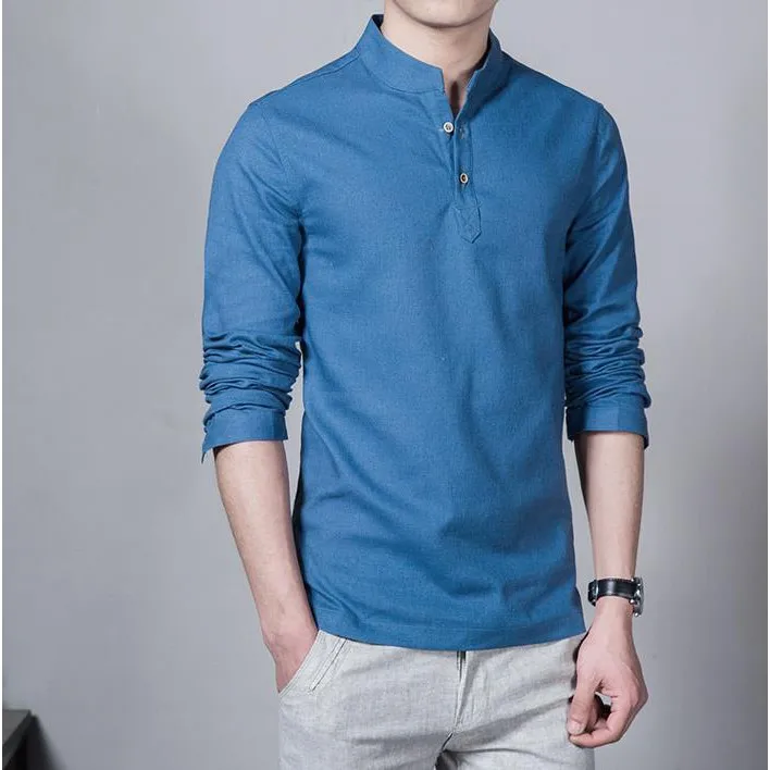 Мужская мусульманская рубашка с длинным рукавом, Болливудский воротник-стойка, рубашки с лавандовым свободным воротником