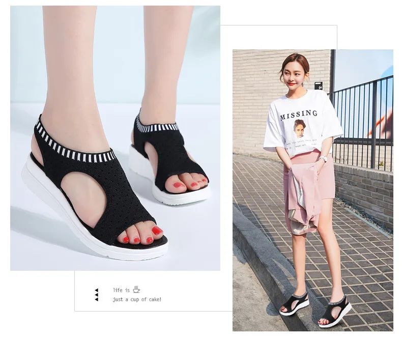 Сандалии женские на танкетке, дышащие удобные туфли на плоской подошве, без застежки, летняя повседневная обувь