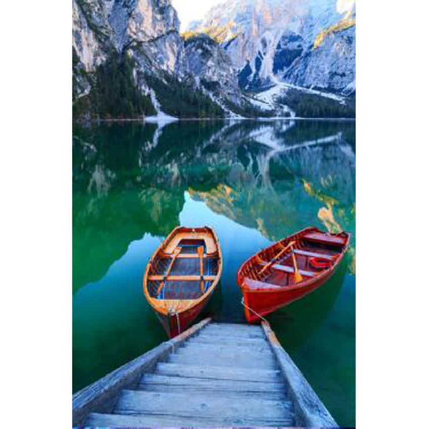 Fangyuan алмазная живопись на берегу озера лодка 5D DIY Алмазная вышивка ручной работы мозаика на берегу озера пейзаж Художественный набор домашний декор BM653