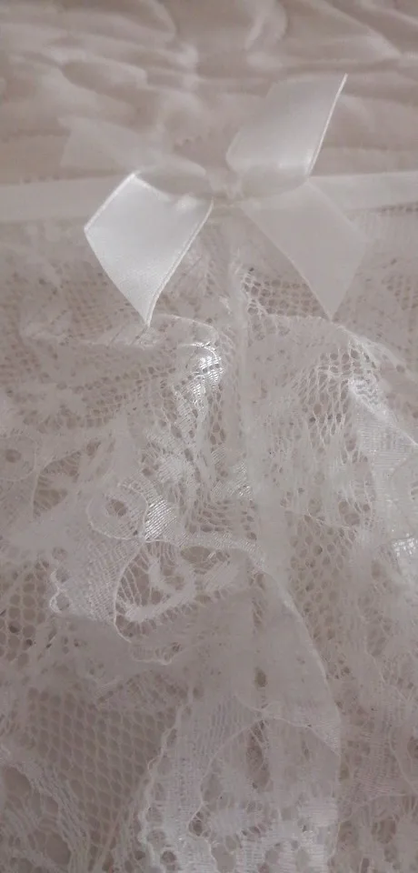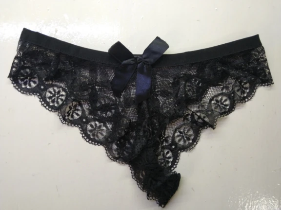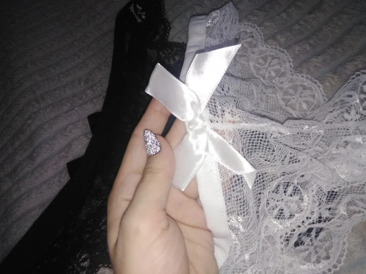 Бантик немного меньше, чем показано на картинке. Если у вас размер "M", берите "L", "XL" брать не стоит, мне слишком велики. Кое-где торчат нитки, но в целом очень хорошо. Тонкие, приятные на ощупь кружева.