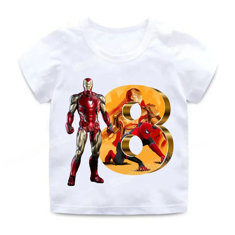 Футболка с рисунком Марвел, футболка в эстетике Железного Человека-паука, рубашки, одежда для мальчиков, топы на день рождения принт супергероев, цифровая, с коротким рукавом
