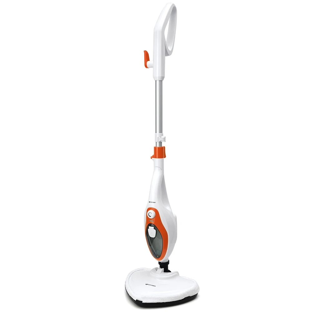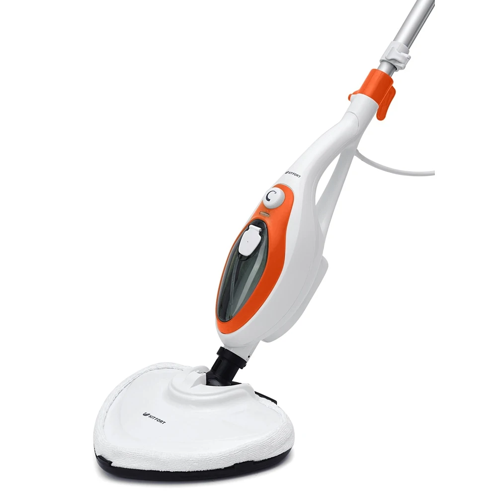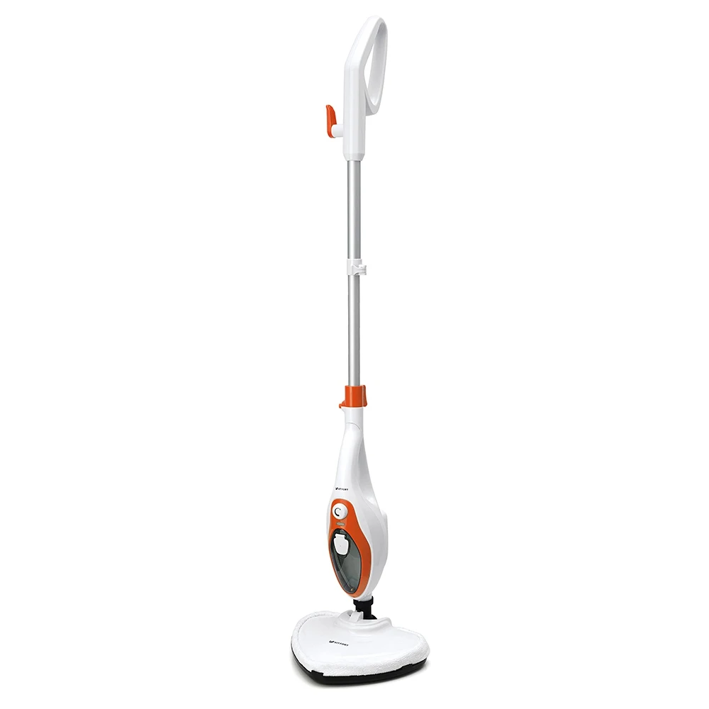 Основные характеристики: Мощность: 1500 Вт. Управление на корпусе. Регулировка подачи пара. Расход воды 35 г/мин. Емкость резервуара 0.35 л. Длинна сетевого шнура 4.8 м. Особенности: не только поможет вымыть пол, но также имеет насадки для мойки стекла и отпаривания тканей. Паровой шваброй можно производить чистку паром различных поверхностей и предметов