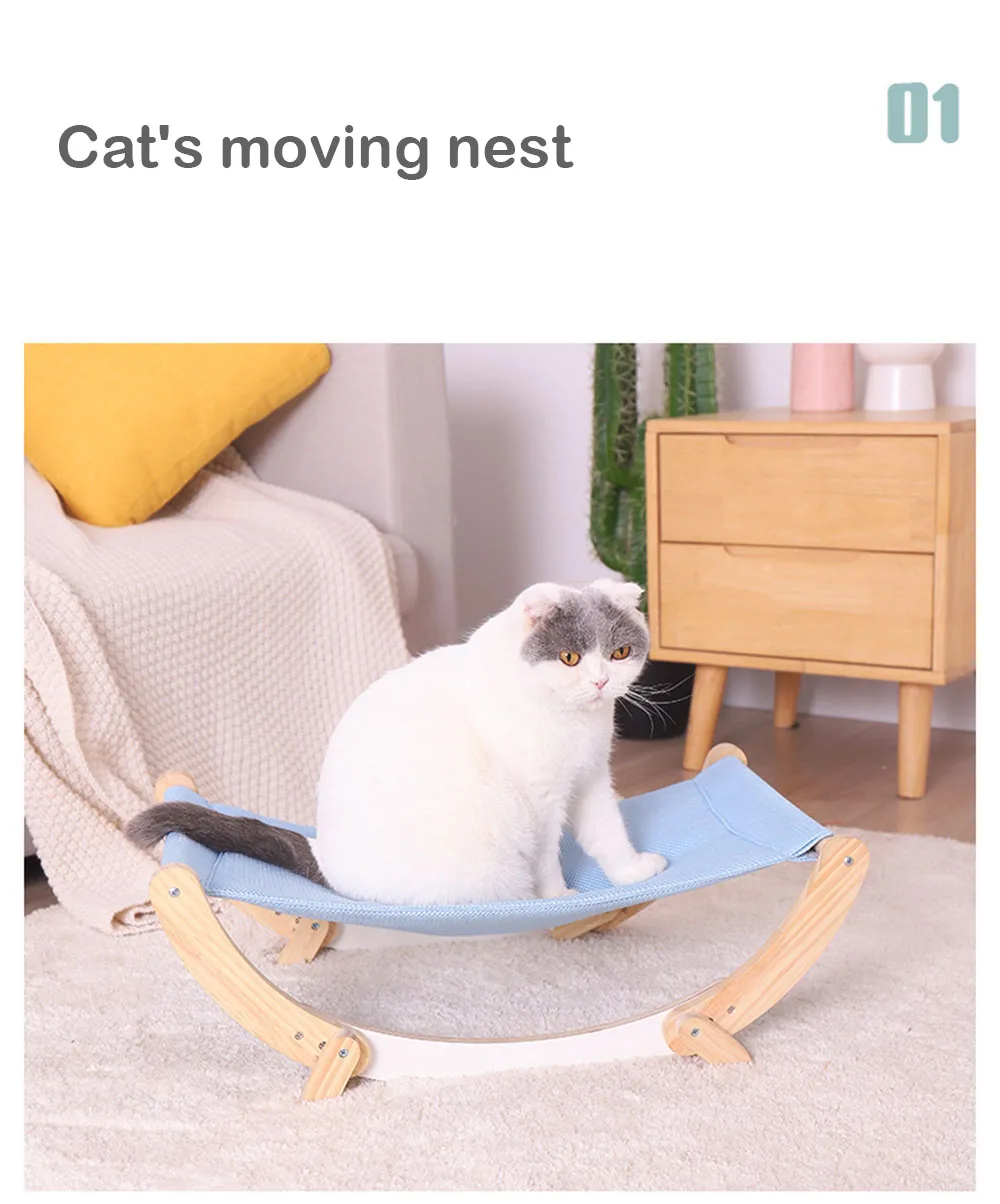 Мягкое кресло-качалка для кошек 2 в 1, подвесная кровать для домашних животных, гамак, качели, игрушка, прочная деревянная рама для маленьких кошек, маленьких котят