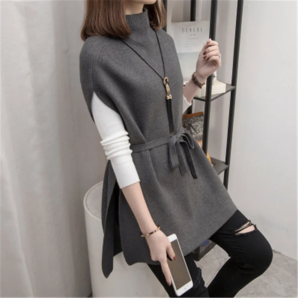 Новинка 2021, женская одежда на осень и зиму, Женский Длинный жилет, вязаный свитер, свитер средней длины с высоким воротником, Модные жилеты в Корейском стиле