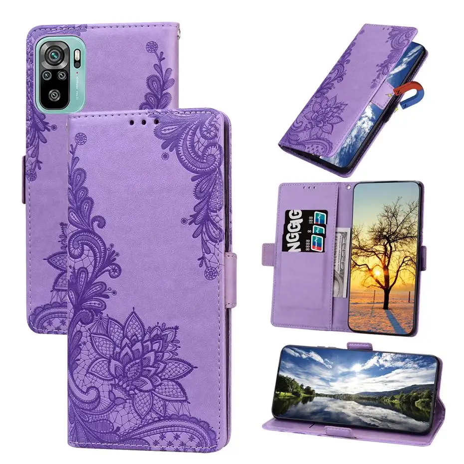 Кожаный чехол-кошелек с кружевным цветочным узором и откидной крышк...