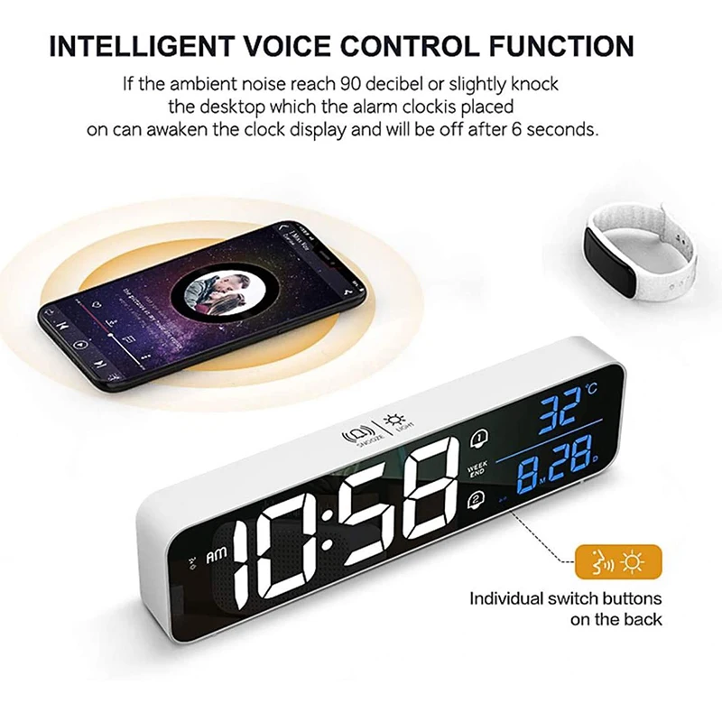 Беспроводной будильник MICLOCK, 10,4 дюйма, перезаряжаемые большие светодиодсветодиодный настенные цифровые часы, 40 мелодий звонка, активация звуком, дата, дисплей с температурой
