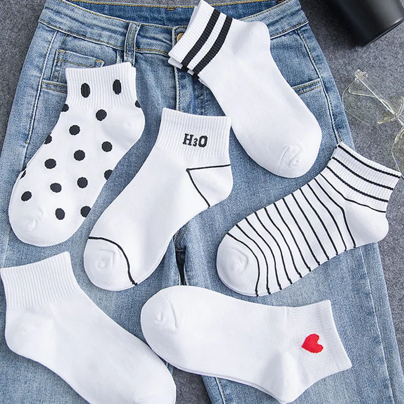 Носки женские хлопковые в полоску, милые короткие штаны в японском стиле Харадзюку, для скейтборда с сердечками, уличная одежда