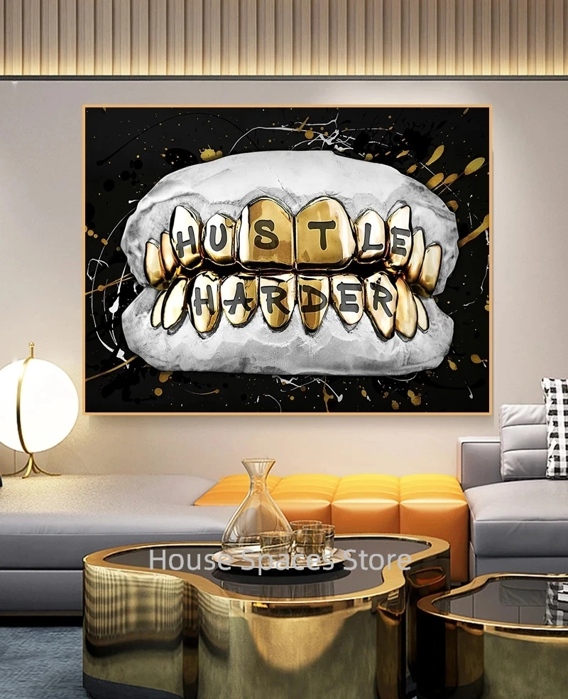 Черное золото, усердная работа, Вдохновляющие зубы, настенный плакат, семейная комната, детская комната, спальня, настенное украшение, холст, искусство (без рамки)