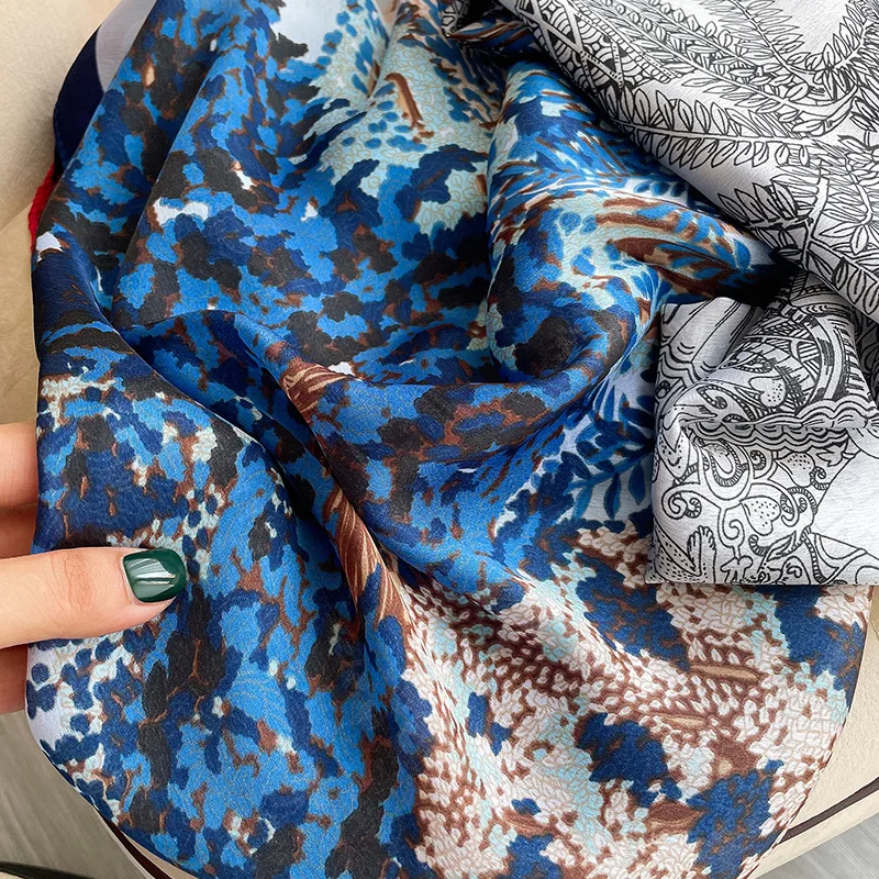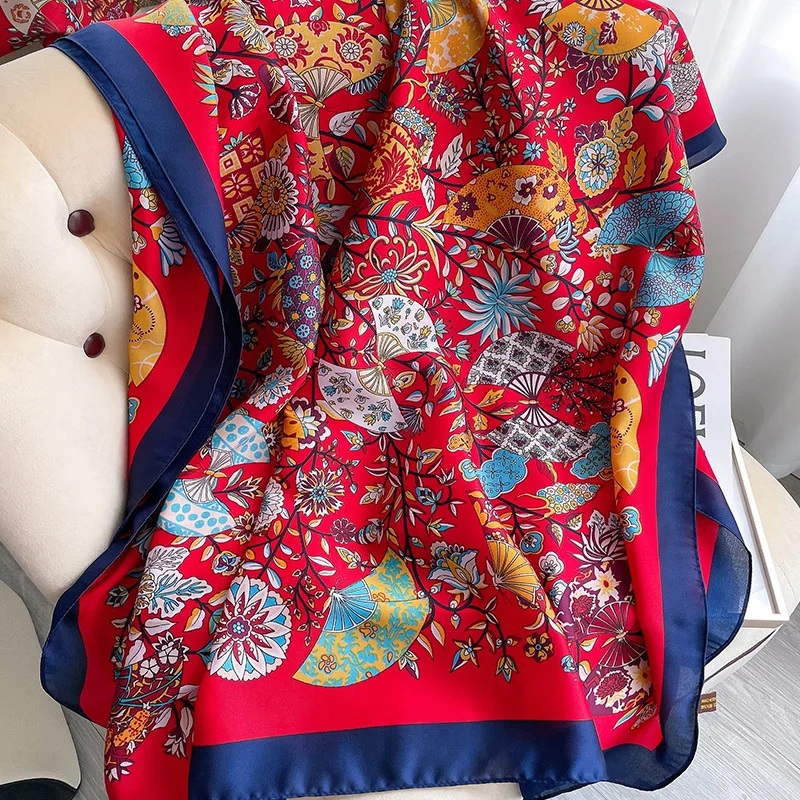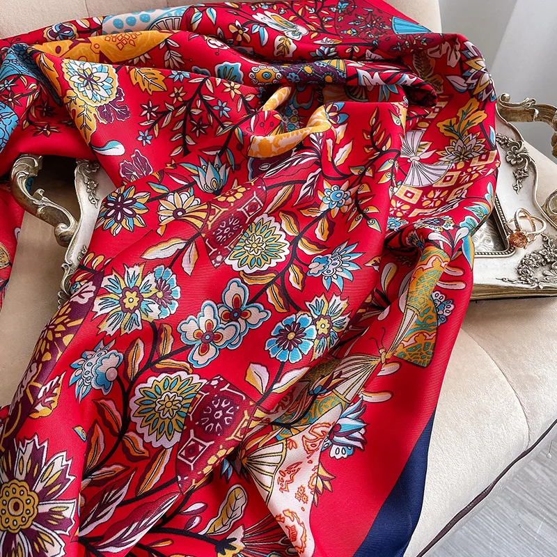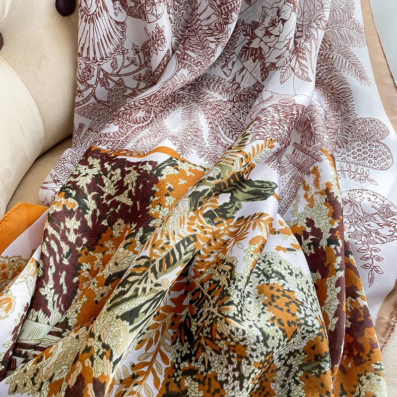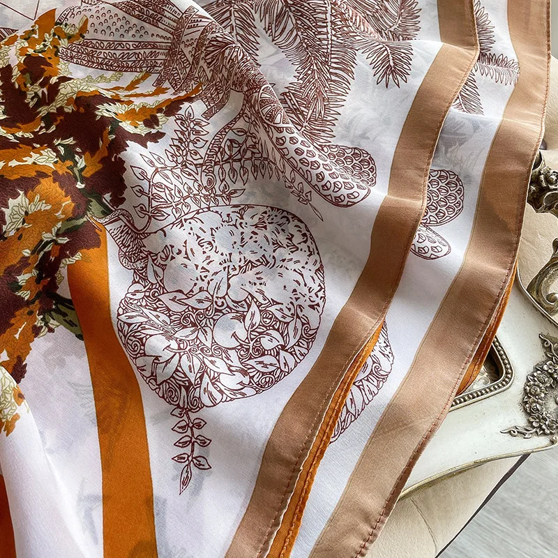 100% натуральный шелковый шарф, Женская роскошная фирменная шаль из пашмины в ацтекском стиле с цветочным узором, Женская длинная бандана, большой размер 2021