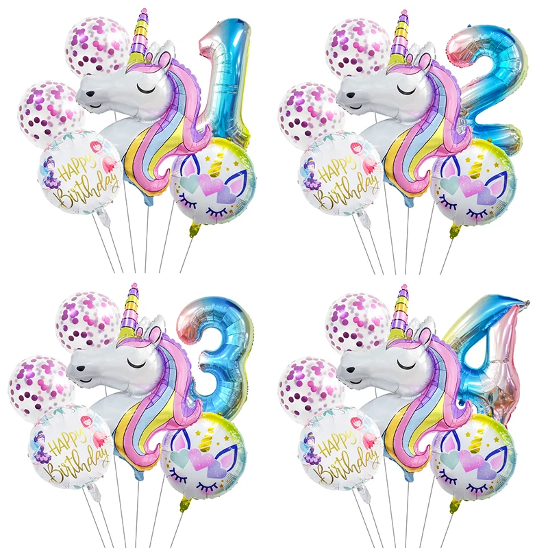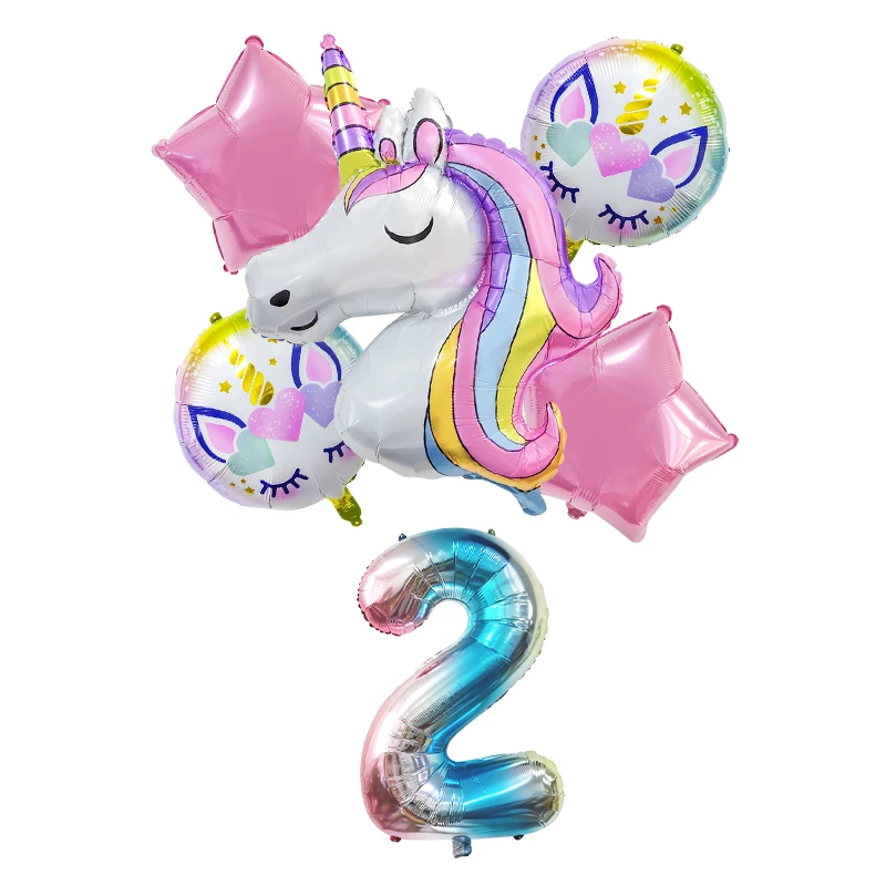 6 шт., радужные воздушные шары в виде единорога, 32 дюйма