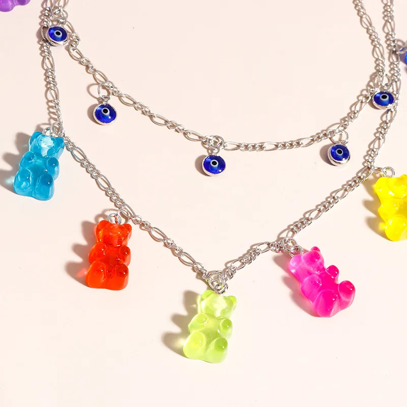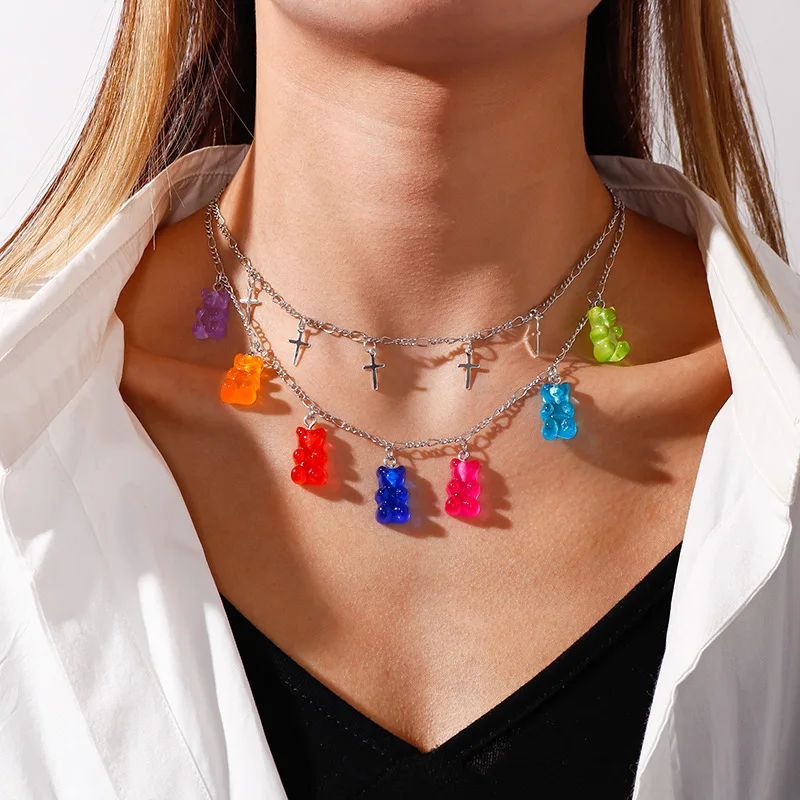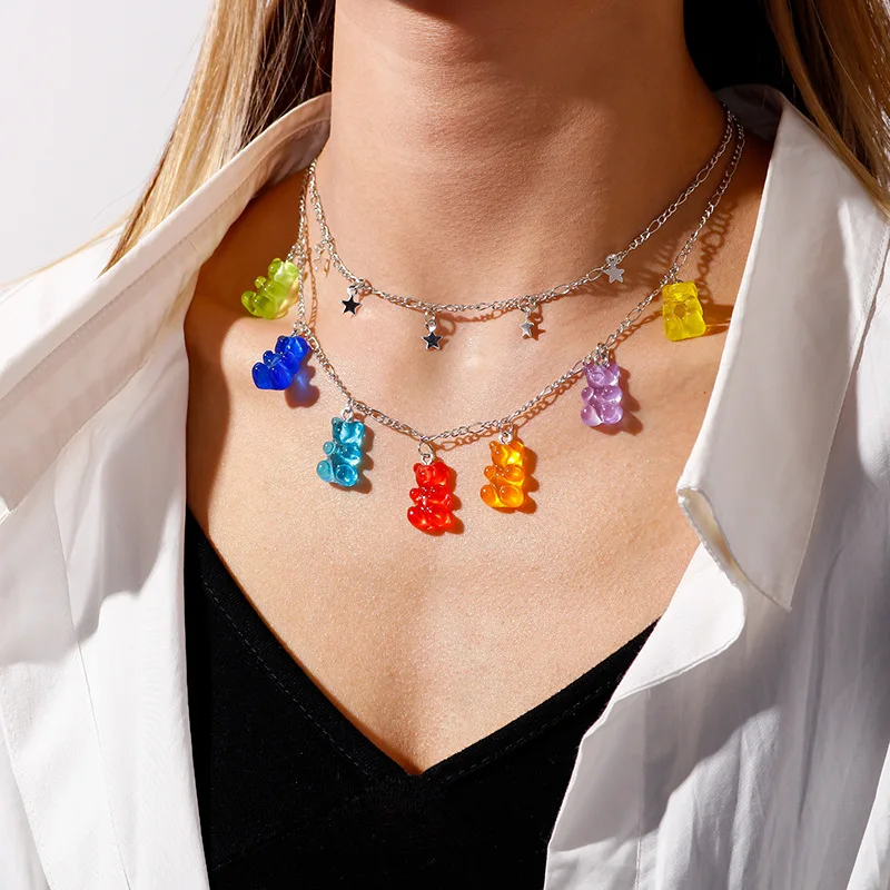 Многослойное ожерелье ручной работы конфетного цвета с мишкой-резинкой для женщин, рождественские подарки, новые ожерелья с подвесками в виде звезды и Креста, ювелирные изделия