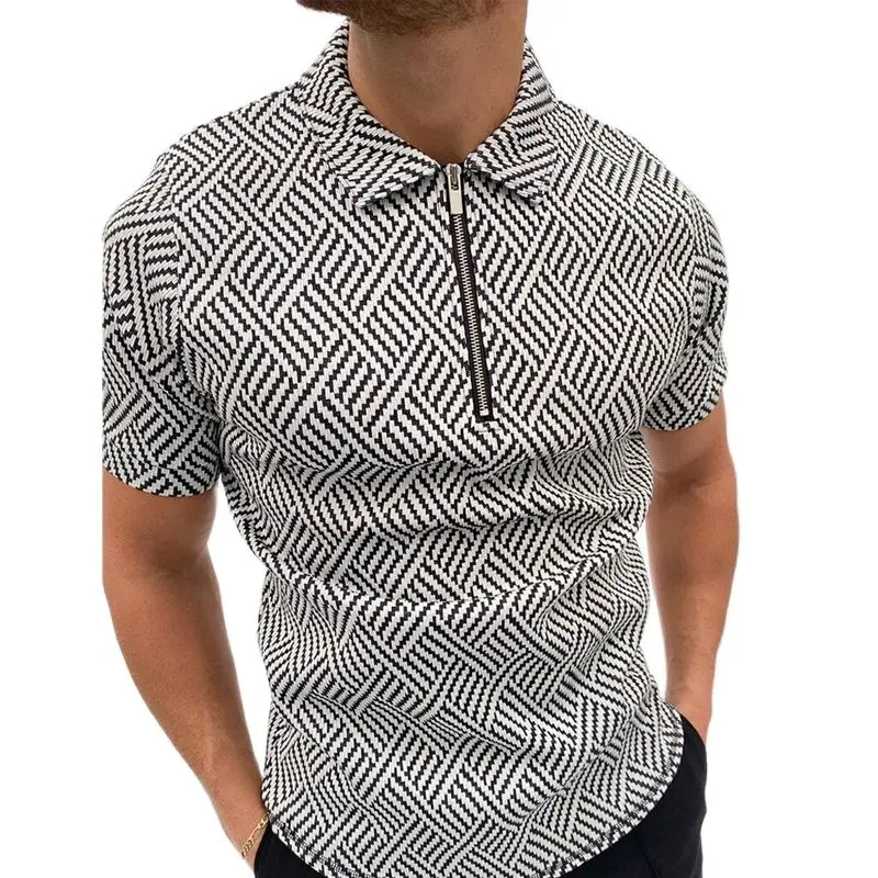 Рубашка-поло мужская, с коротким рукавом, с отложным воротником, на молнии, лето 2021