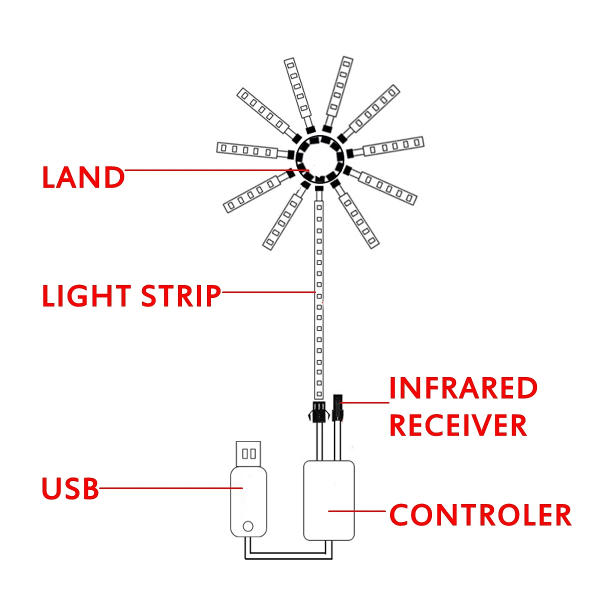 10 полосок 0,5 м + 1 Полоски 1,5 метров + держатель лампы + Управление; + дистанционный пульт Управление