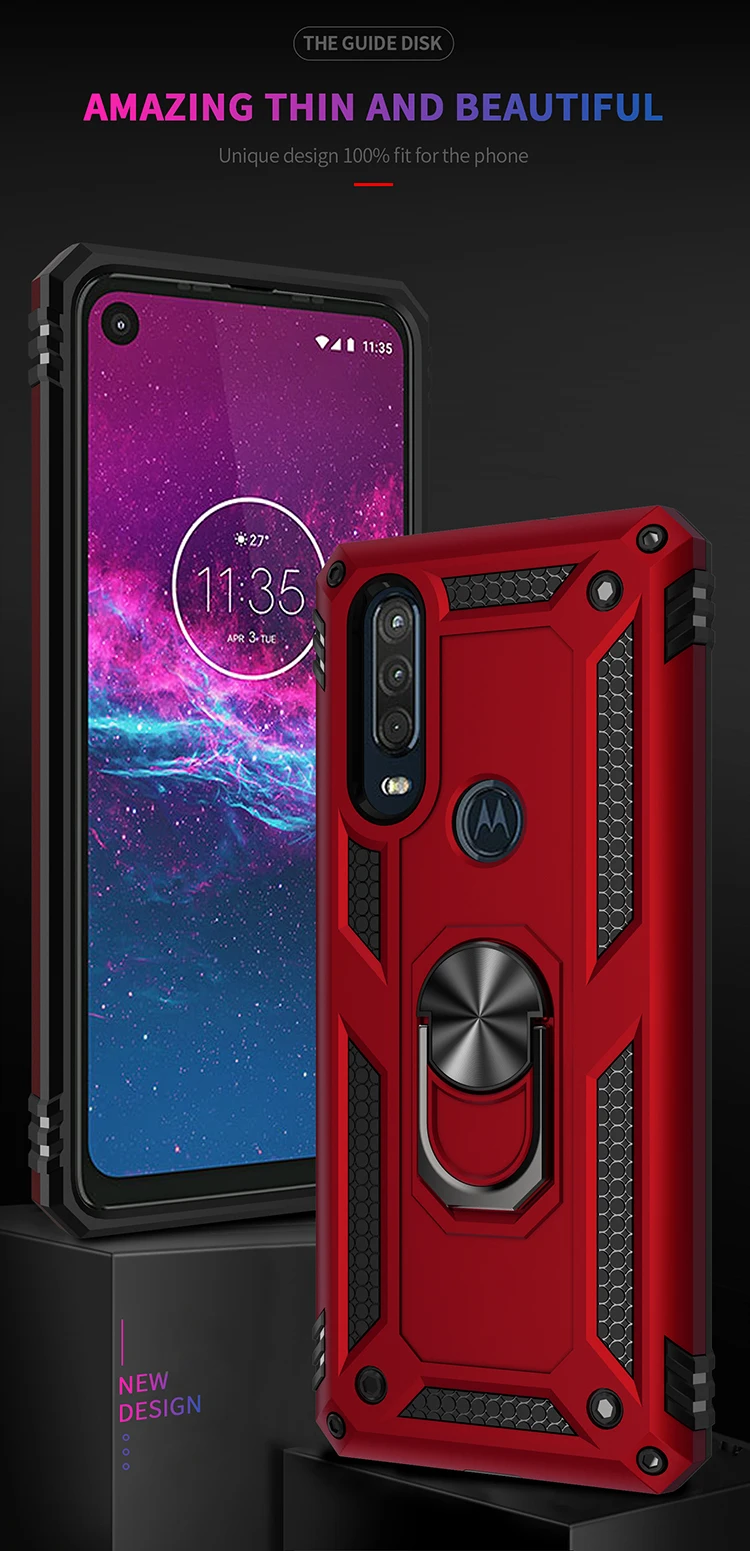 2022 для Motorola Moto One Action бронированный противоударный чехол для Moto One Action военный защитный магнитный автомобильный держатель Чехол с кольцом