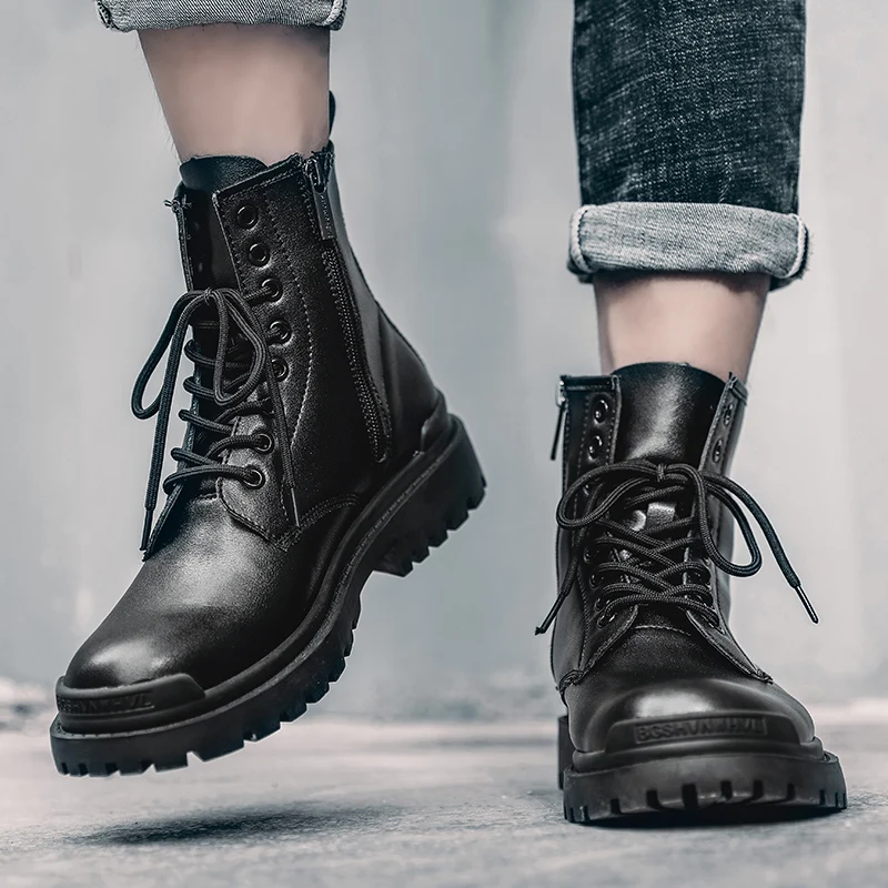 Мужские зимние ботинки, теплые кожаные ботинки с мехом в западном стиле, мотоциклетные ботильоны в стиле панк, мужские военные зимние повседневные ботинки размера плюс 46