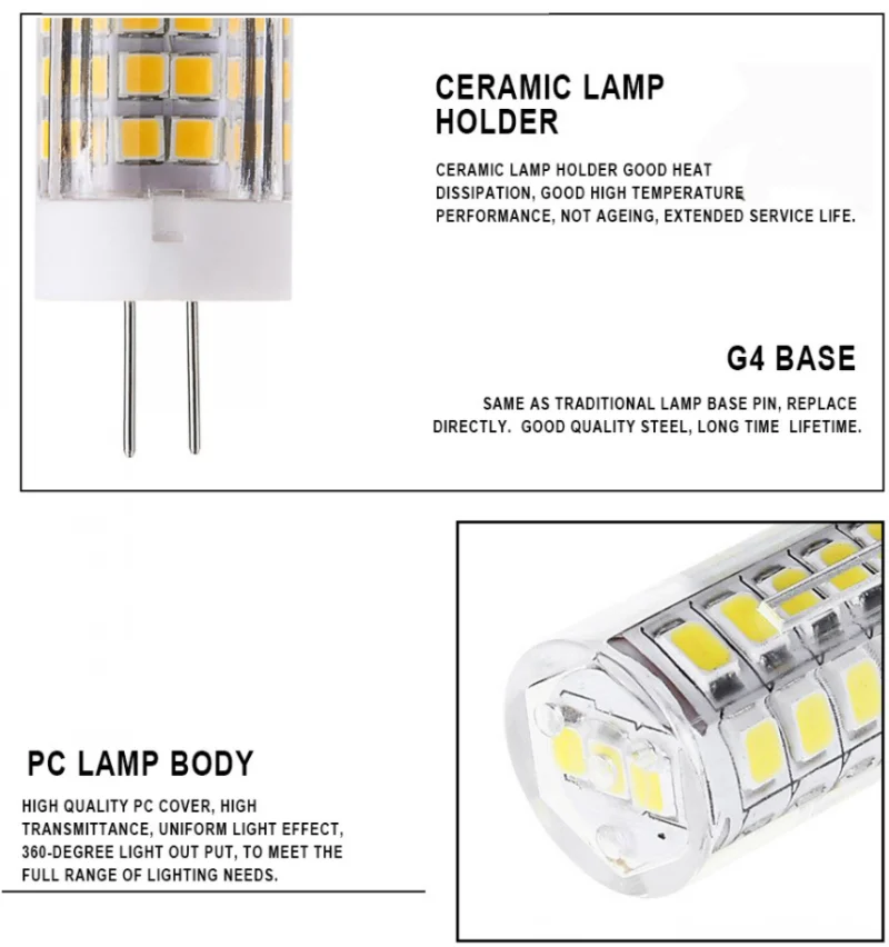 Лампа-кукуруза G4 с прямым контактом, 220 В, SMD2835, 3 Вт, 5 Вт, 7 Вт, 9 Вт, лампа керамическая светодиодная, заменяет галогенный светильник для люстры 30 Вт, 40 Вт, 60 Вт, 80