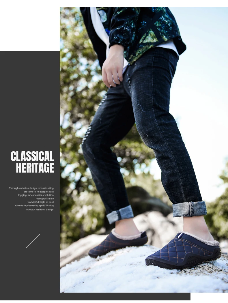 Мужские зимние хлопковые шлепанцы, Уличная обувь, водонепроницаемая, с защитой от холода, Повседневная теплая плюшевая обувь, большие размеры 39-48